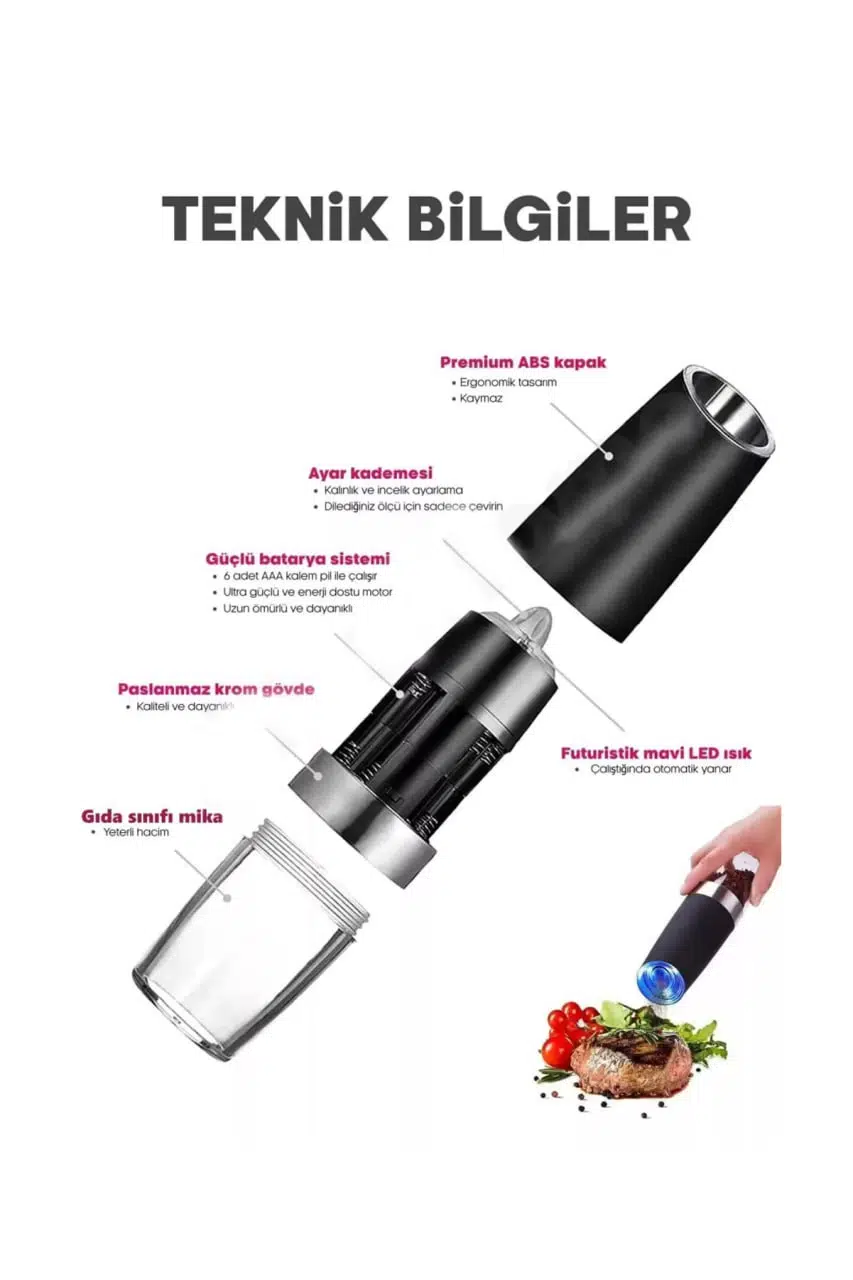 Paket İçeriği: 1 adet sensörlü baharat değirmeni