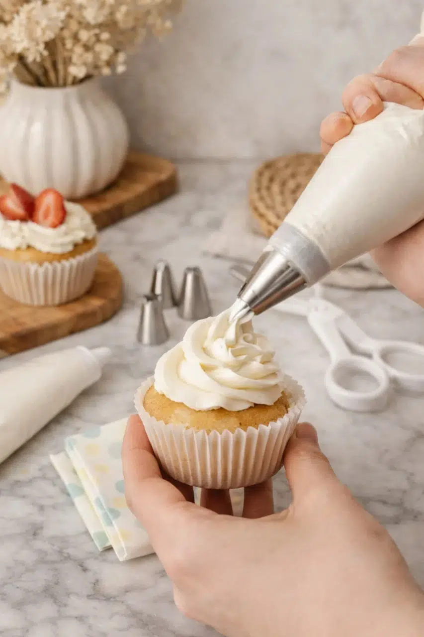 Pasta, cupcake ve şeker hamuru süslemelerinde kusursuz çiçekler ve zarif krema detayları oluşturmanıza yardımcı olur.