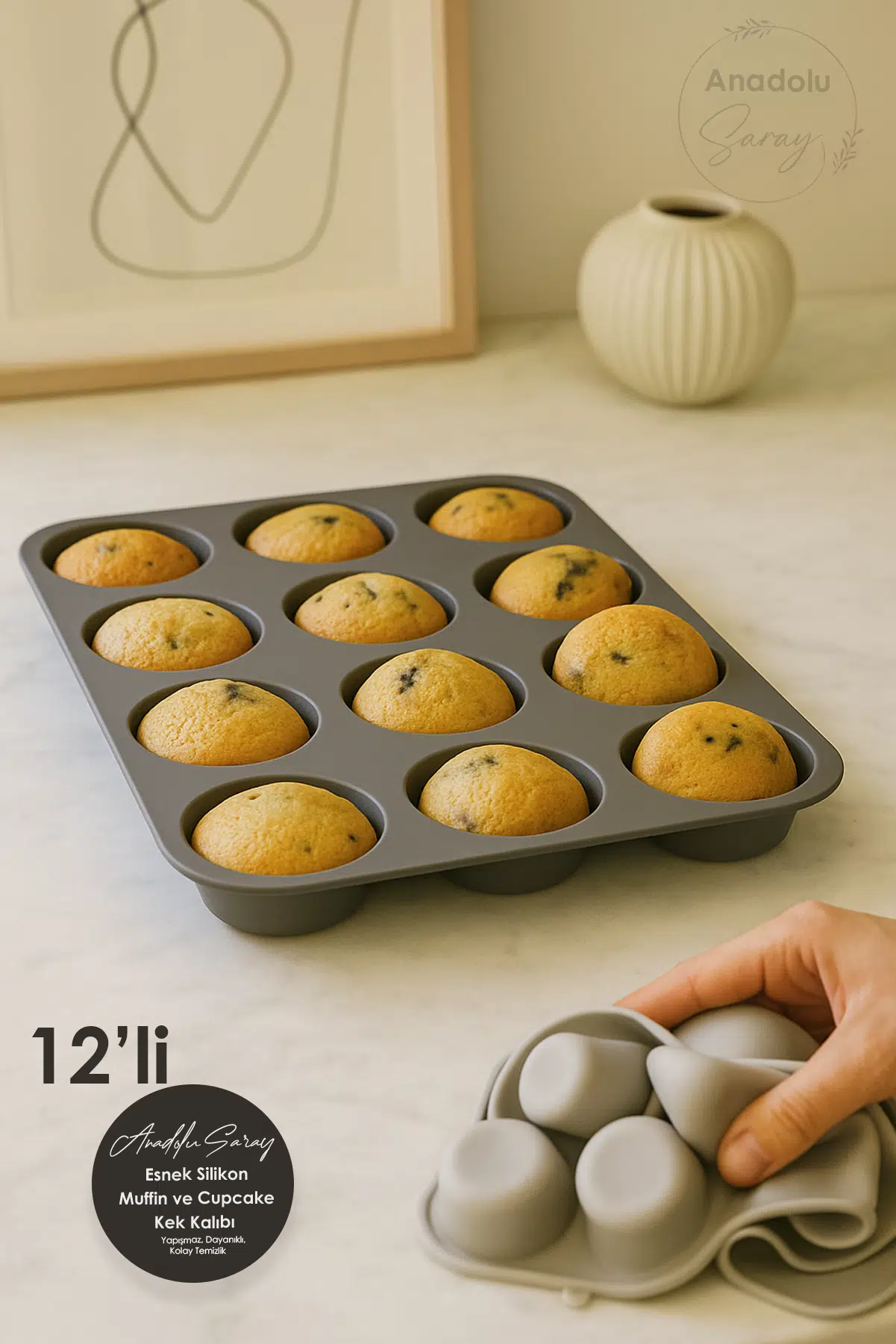 Yumuşak dokusu ve üstün ısı dayanımıyla öne çıkan 12’li silikon muffin kek kalıbı, hem profesyonel pastacılar hem de evde lezzetli tarifler hazırlamayı sevenler için ideal bir yardımcıdır.