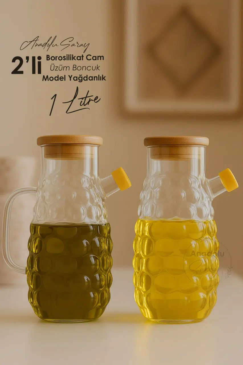 Mutfakta zarafet ve işlevselliği bir arada sunan 1 Litre Borosilikat Cam Üzüm Boncuk Model Yağdanlık Sirkelik, modern tasarımıyla sofralarınıza estetik bir dokunuş katar. Isıya dayanıklı borosilikat cam malzemeden üretilen bu şık yağdanlık, hem zeytinyağı hem de sirke gibi sıvılar için idealdir.
