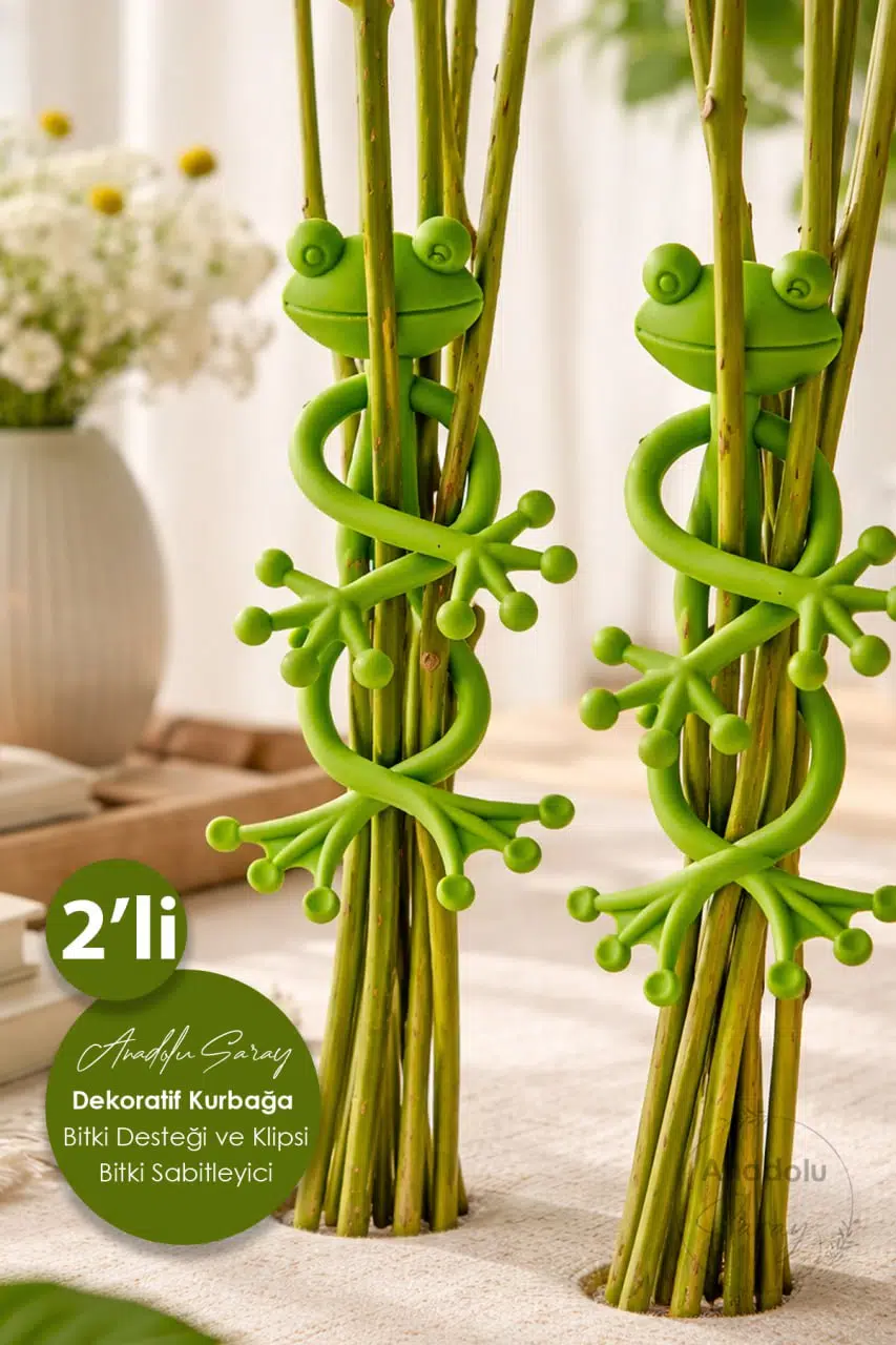 2 Adet Kurbağa Figürlü Bitki Desteği