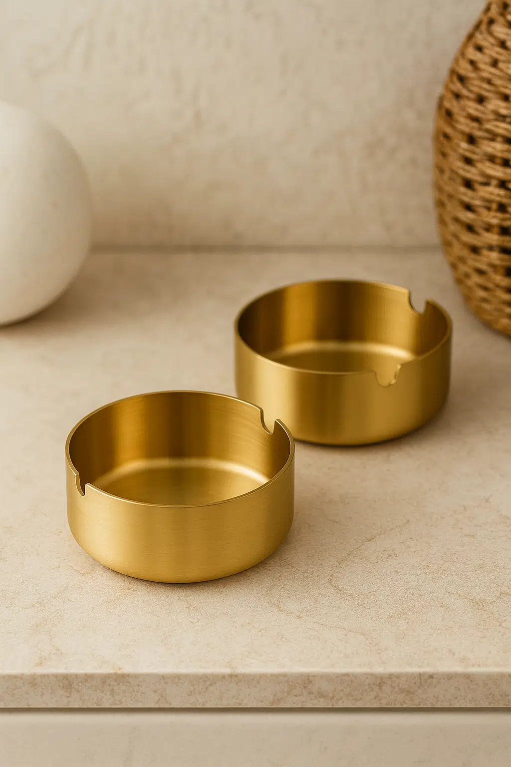 Modern ve Minimalist: Zarif altın rengi ile dekoratif şıklık katar.; Taşınabilir Özellik: Portatif yapısı sayesinde ister evde ister dış mekânda kolayca kullanılabilir.; Kaliteli Malzeme: Sağlam metal yapısı uzun süreli kullanım garantiler.; Kullanışlı Bölmeler: 3 adet sigara bölmesi ile konforlu kullanım sunar.; Estetik Görünüm: Ev dekorasyonuna uyum sağlayan şık tasarımıyla dikkat çeker.;