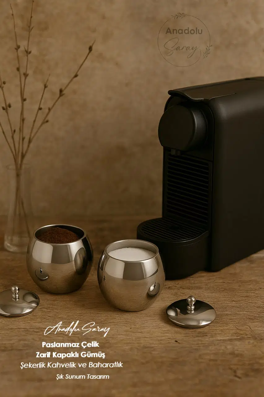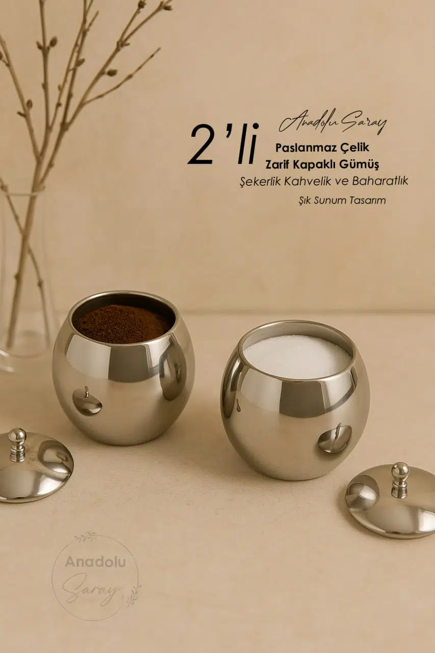Mutfağınızda estetiği ve dayanıklılığı bir araya getiren 0,80 MM kalınlığında paslanmaz çelik zarif kapaklı gümüş şekerlik, kahvelik ve baharatlık, modern ve şık tasarımıyla sofralarınıza zarafet katar.
