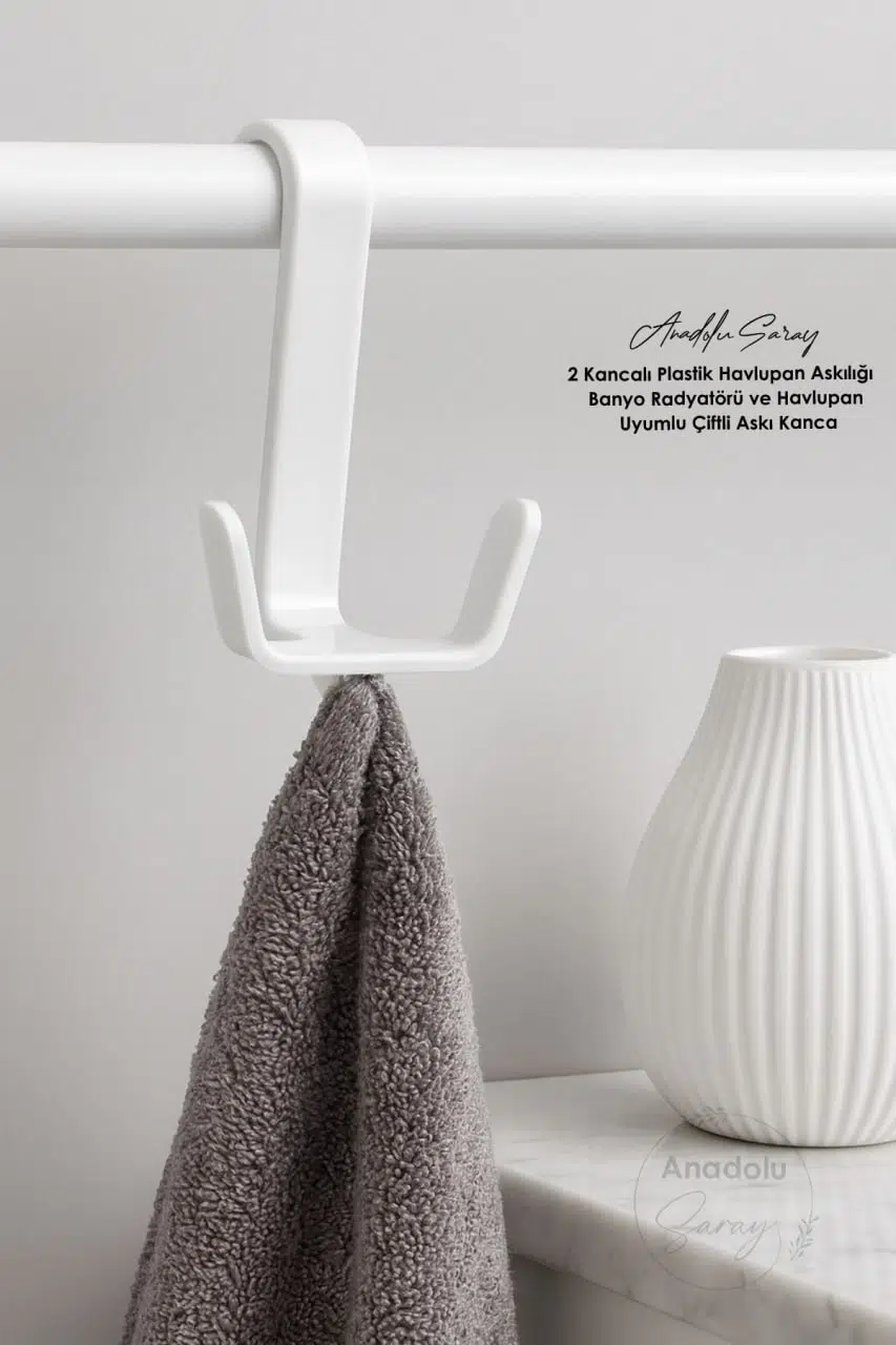 2 kancalı plastik havlupan askılığı, havlu, bornoz veya banyo aksesuarlarınızı asmak için mükemmel bir çözümdür.