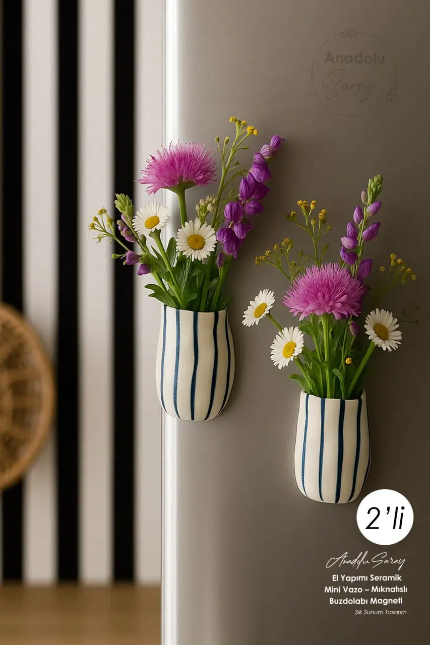 El yapımı seramikten üretilen bu zarif mini vazo, buzdolabınızda veya metal yüzeylerde dekoratif bir dokunuş yaratmak için tasarlandı.