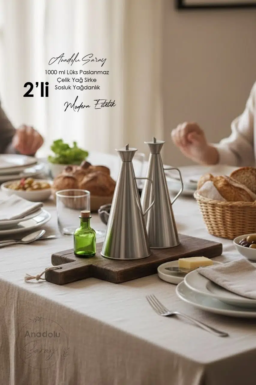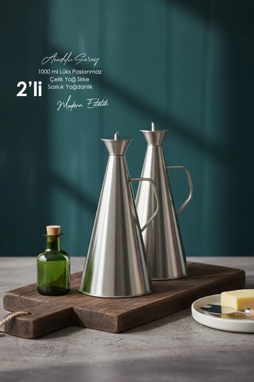 Mutfak tezgahınızda düzeni ve zarafeti bir araya getiren bu 2 Adet 1000 ml (Büyük Boy) paslanmaz çelik yağdanlık seti, sıvı gıdalarınızı saklama ve servis etme alışkanlığınızı üst seviyeye taşıyor.