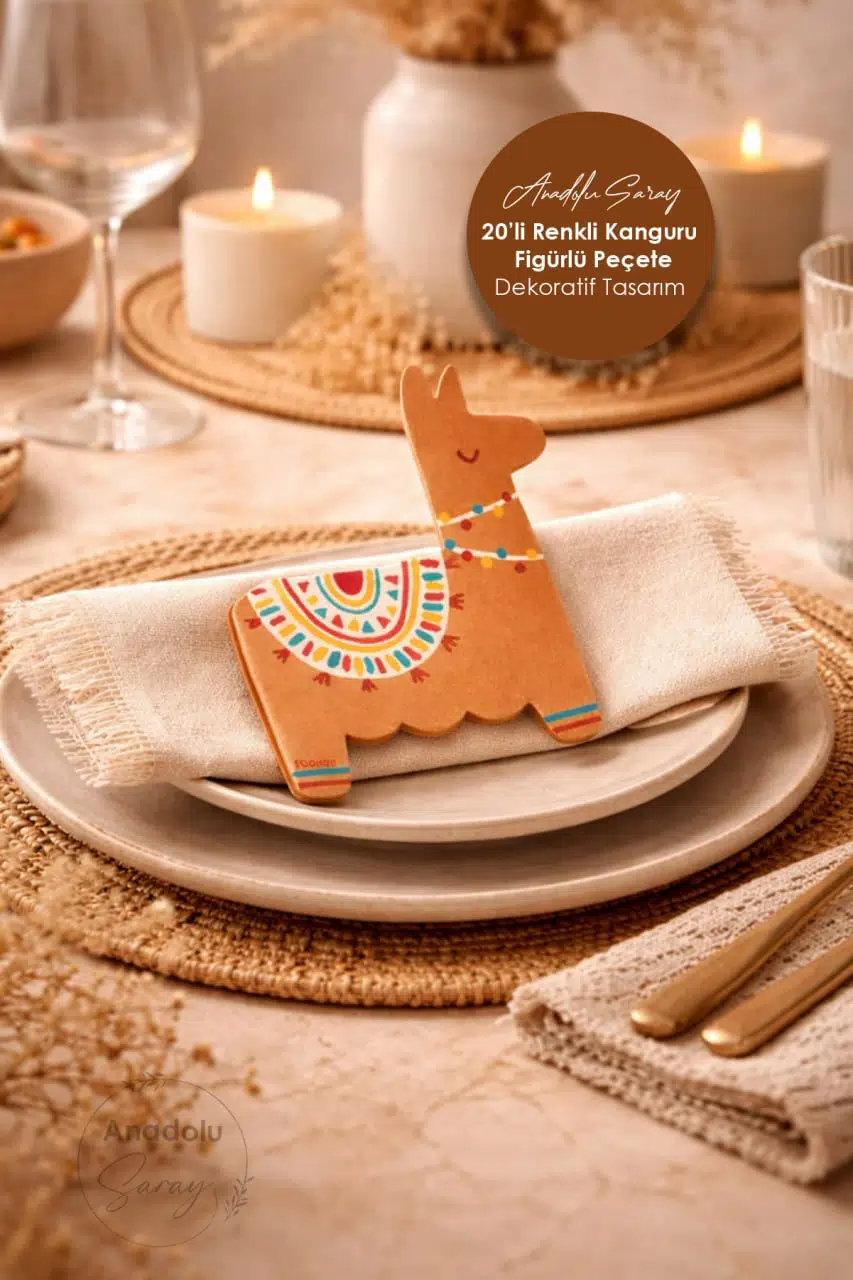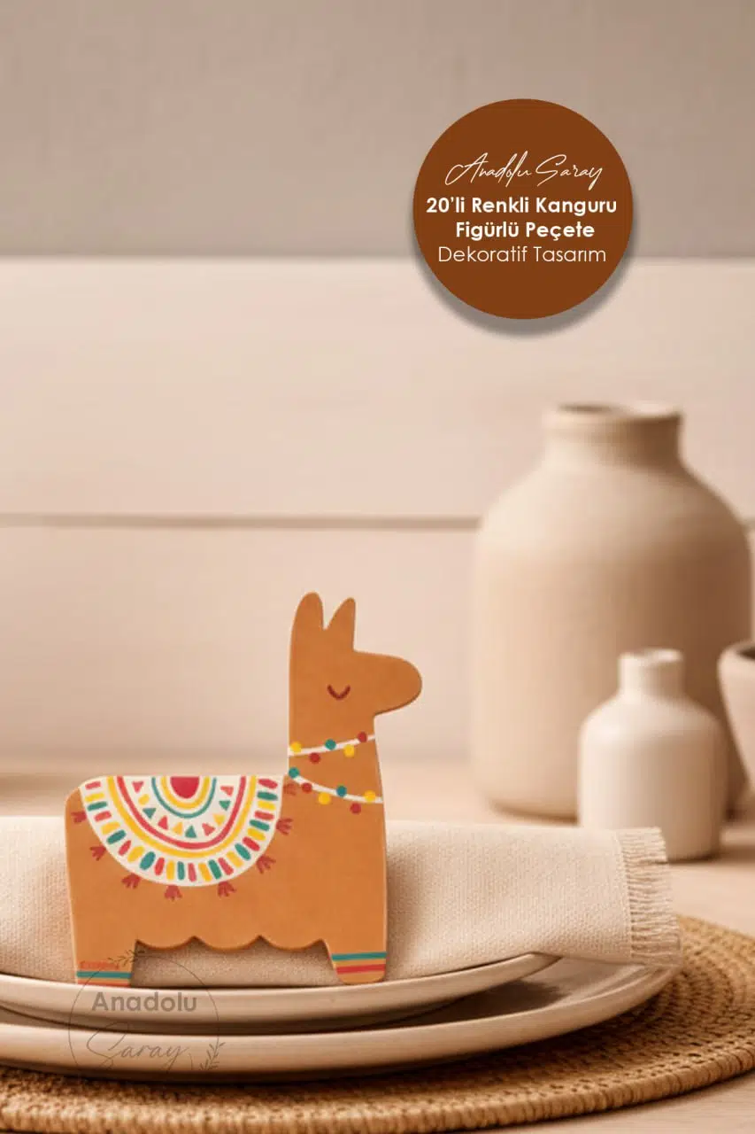 Sofra sunumlarını eğlenceli ve estetik bir dokunuşla tamamlamak isteyenler için özel olarak tasarlanan 20’li renkli kanguru figürlü peçete, davetlerden günlük kullanıma kadar her ortamda fark yaratır.