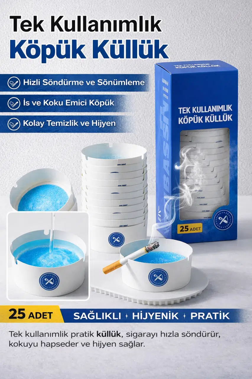 Sigara söndürme sırasında oluşan kötü koku, duman ve kül dağınıklığı artık sorun değil! Yeni nesil jel teknolojisi ile üretilen tek kullanımlık jel küllük, sigarayı saniyeler içinde söndürür, külü sabitler ve kokuyu hapseder.
