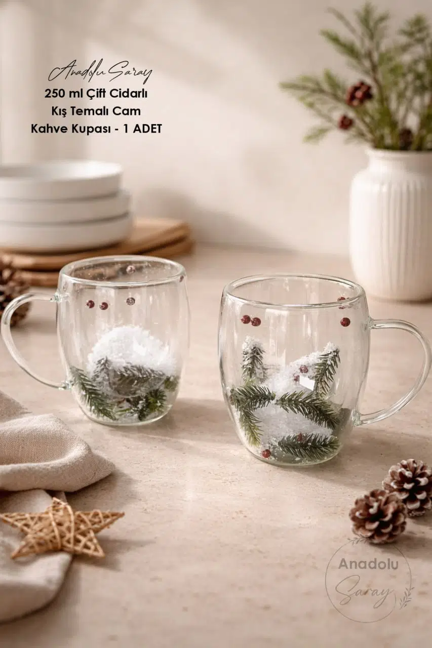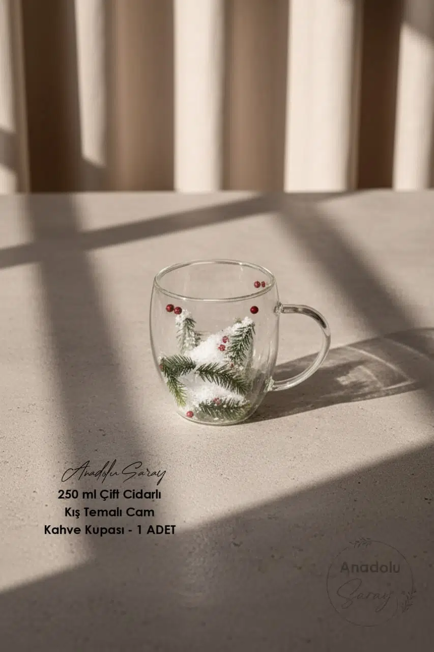 Soğuk kış günlerinde sıcak içecek keyfini estetik bir dokunuşla birleştiren 250 ml çift cidarlı Christmas cam kahve kupası, hem günlük kullanım hem de dekoratif sunumlar için ideal bir üründür.