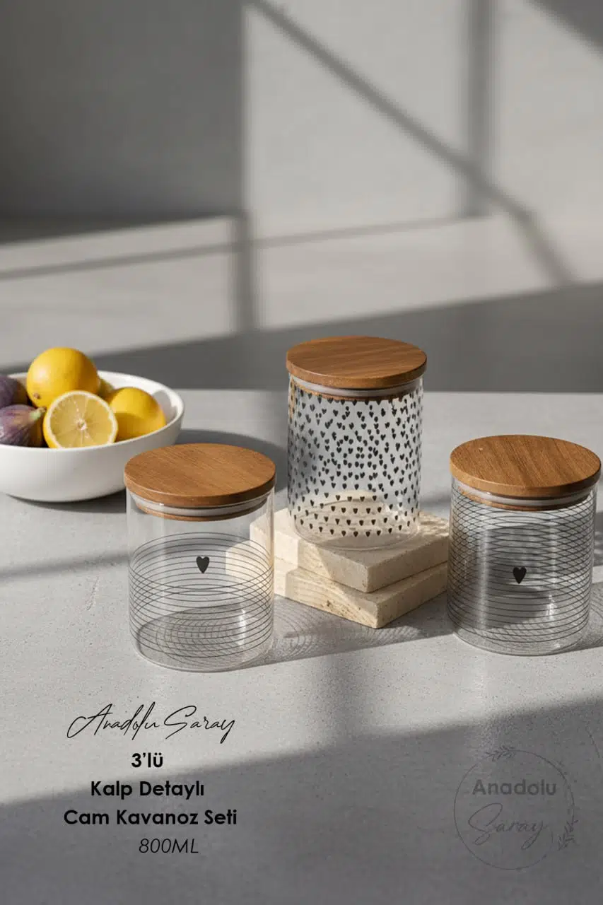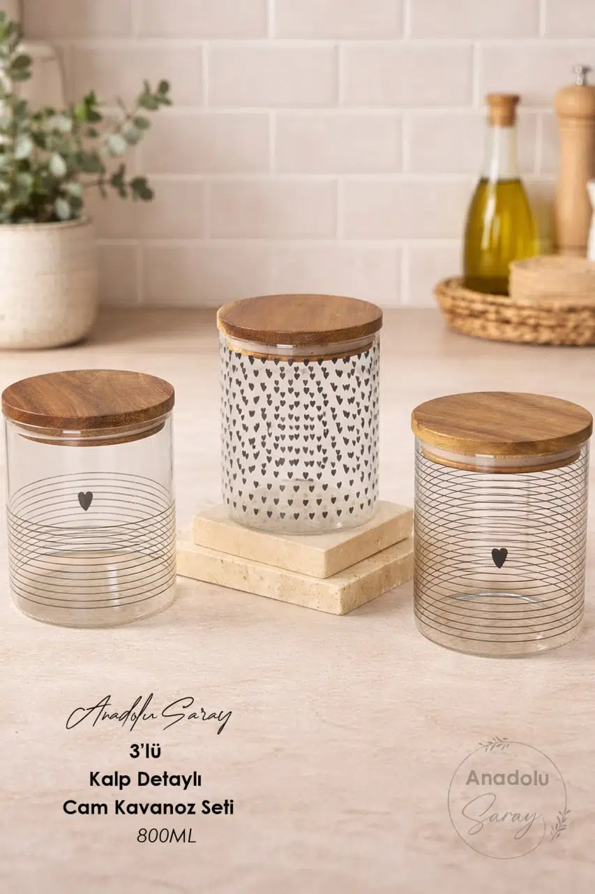 3’lü Heart Cam Kavanoz Seti, fonksiyonel tasarımı ve modern detaylarıyla günlük kullanım için idealdir.