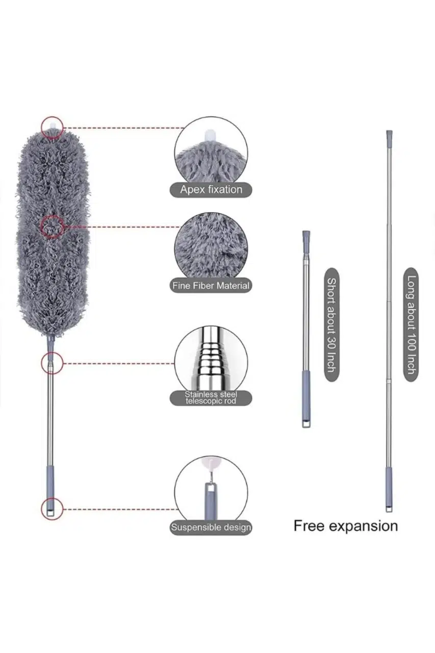 Ayarlanabilir sap uzunluğu sayesinde yüksek tavanlar, dolap üstleri, perde rayları ve zor ulaşılabilen alanlar rahatça temizlenir.