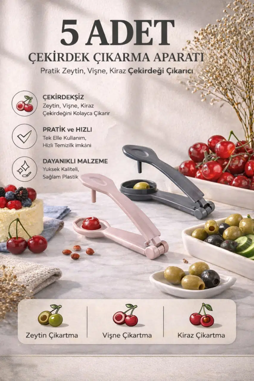 Zeytin, vişne ve kiraz çekirdeklerini saniyeler içinde zahmetsizce çıkarın! Mutfakta pratiklik ve hız arayanlar için ideal çözümdür.