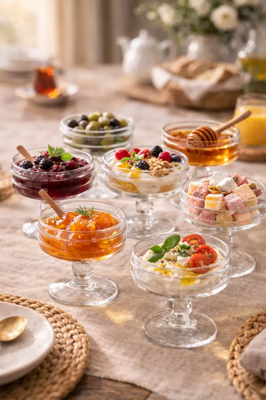 Ayaklı yapısı sayesinde sofrada daha şık ve düzenli bir görünüm oluşturur. Şeritli cam tasarımı ışığı yansıtarak içindeki ürünleri daha iştah açıcı gösterir.