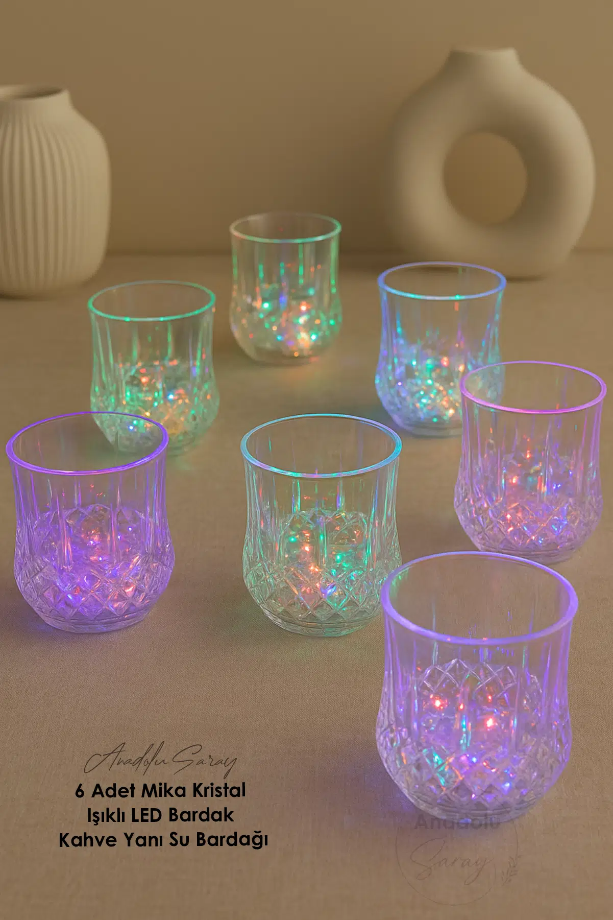 Evinize ve özel günlerinize ışıltı katacak 6 Adet Mika Kristal Işıklı LED Bardak, şık tasarımı ve göz alıcı ışıklarıyla sofralarınıza eğlence getiriyor.