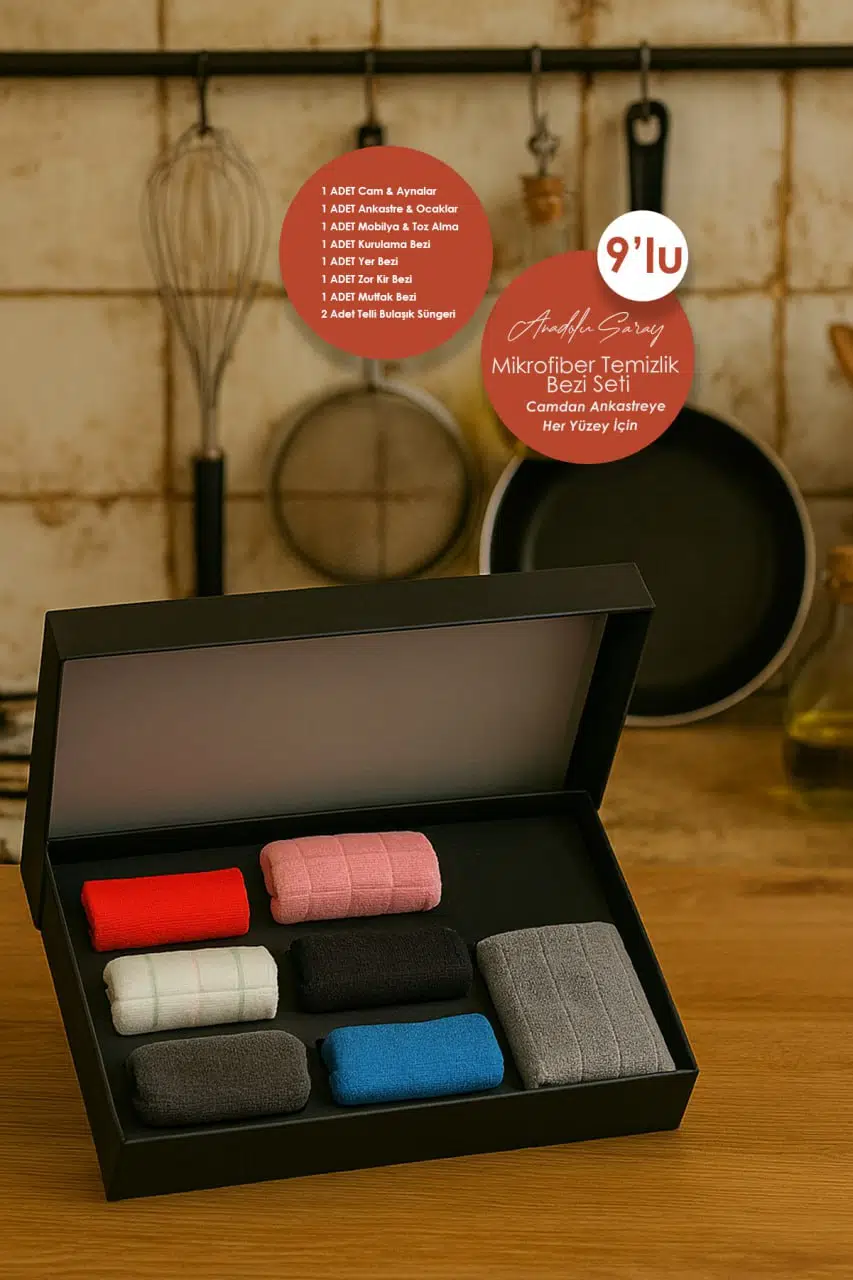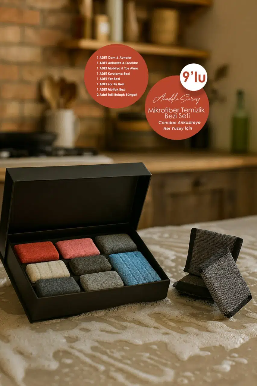 Ev temizliğinde profesyonel çözümler sunan 9’lu Mikrofiber Temizlik Bezi Seti, her yüzeye özel tasarlanmış bezleriyle hijyen, pratiklik ve dayanıklılığı bir araya getirir.