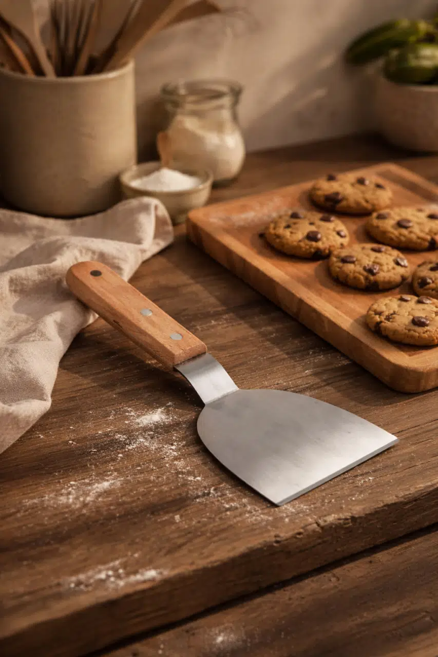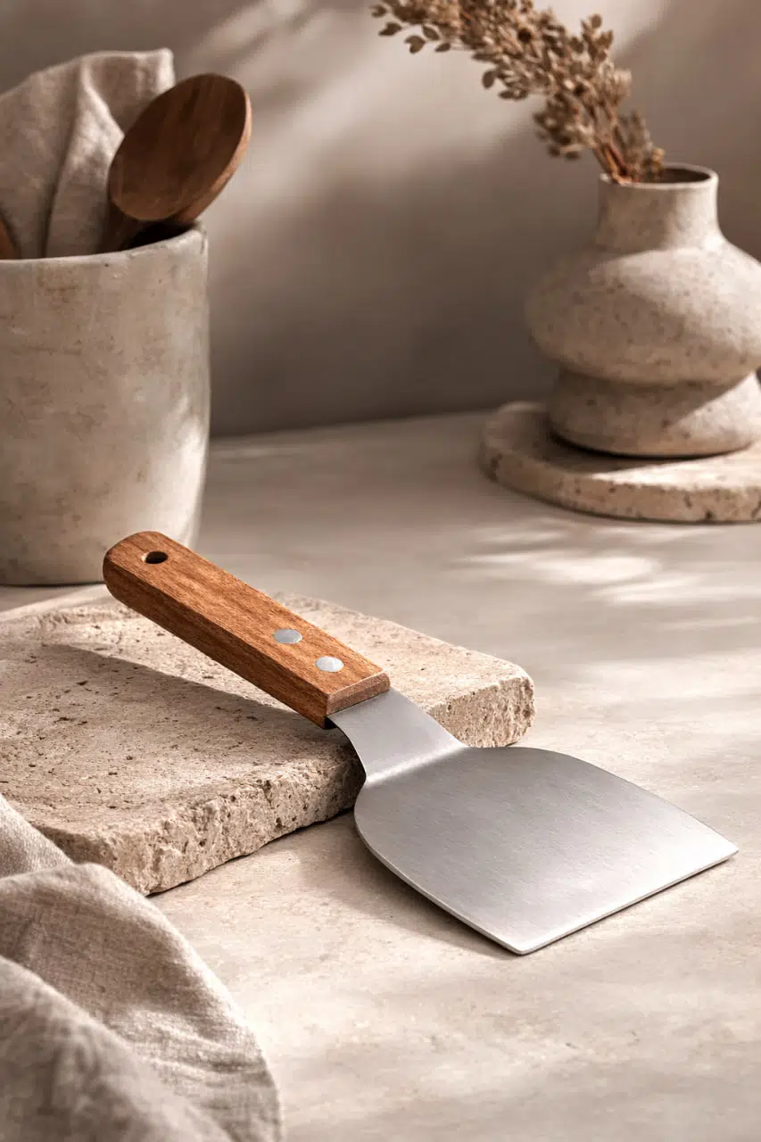 Mutfakta pratiklik ve dayanıklılığı bir arada sunan ahşap saplı paslanmaz çelik spatula, 24 cm ideal boyutu ve ergonomik tasarımı ile günlük kullanım için mükemmel bir yardımcıdır.