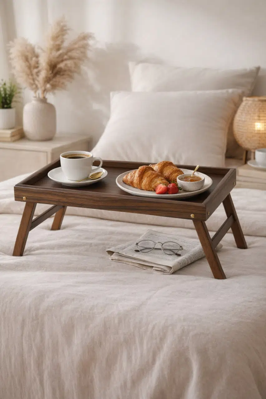 Kahvaltı tepsisi, yatak tepsisi, laptop sehpası ve sunum tepsisi olarak kullanım