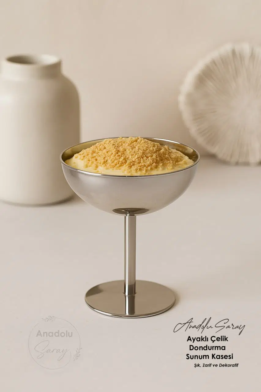 Şık ve modern tasarımıyla sofralarınıza zarafet katacak Ayaklı Çelik Dondurma ve Sunum Kasesi, çok amaçlı kullanımı sayesinde mutfağınızın vazgeçilmezi olacak.