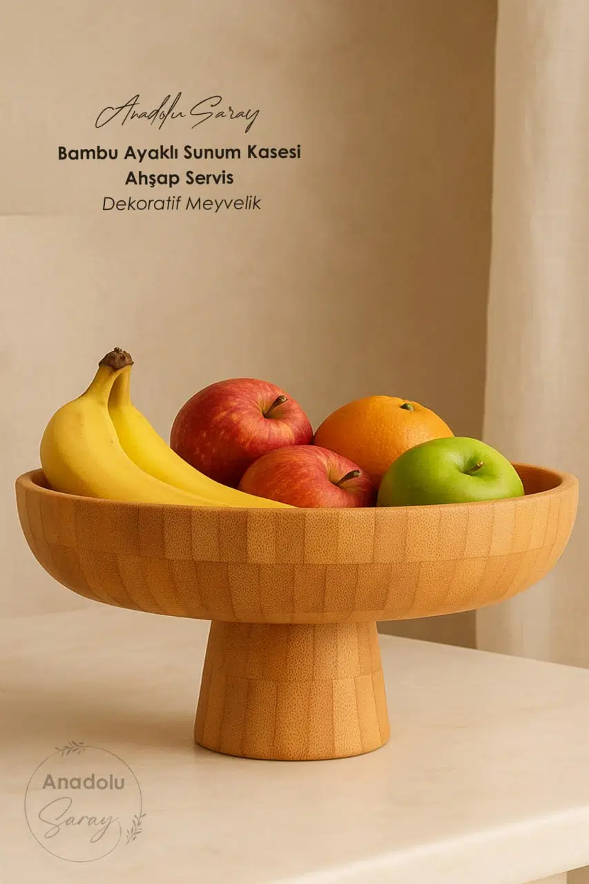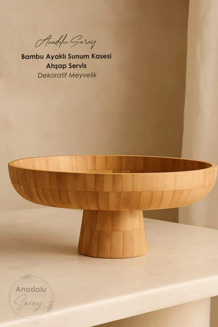 Doğal bambudan üretilen ayaklı sunum kasesi, hem mutfakta hem de yaşam alanlarında estetik bir görünüm sunar. Dayanıklı, hafif ve çevre dostu yapısıyla uzun süre kullanıma uygundur.