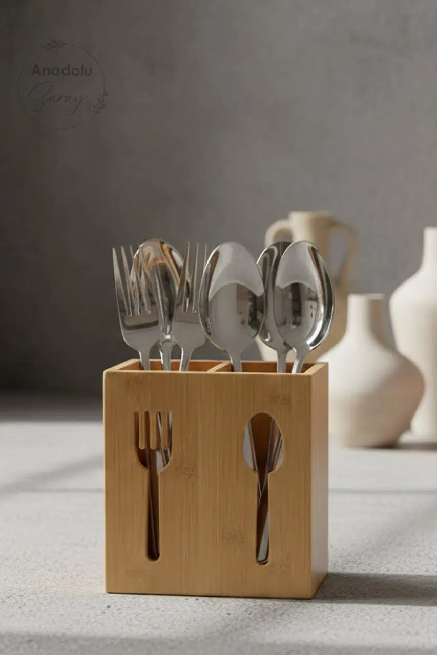 Paket İçeriği: 1 Adet Bambu Çatal Kaşık Düzenleyici Stand.