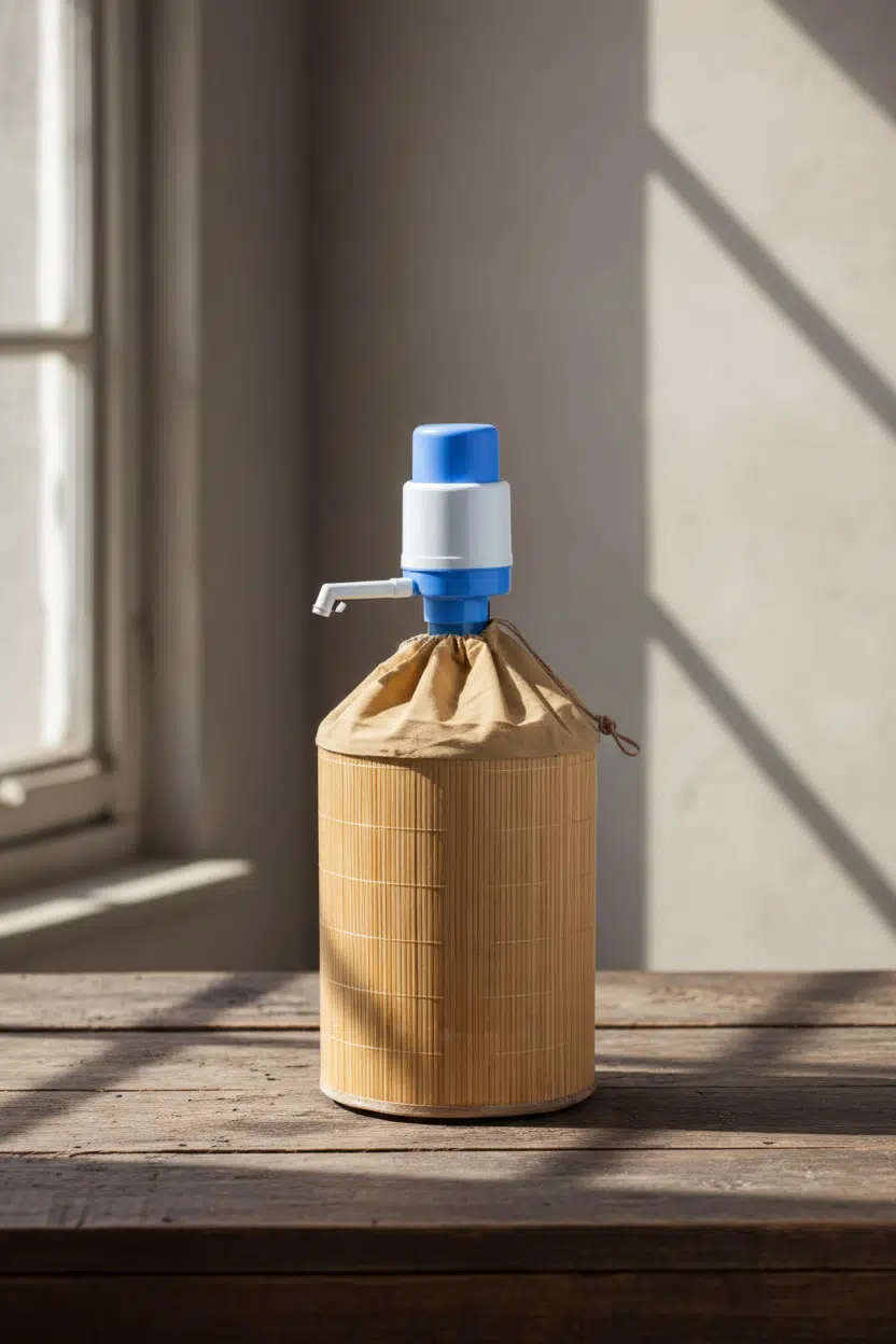 Plastik damacananın görüntüsünü gizleyerek daha düzenli ve estetik bir görünüm oluşturur.