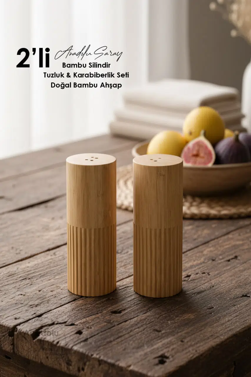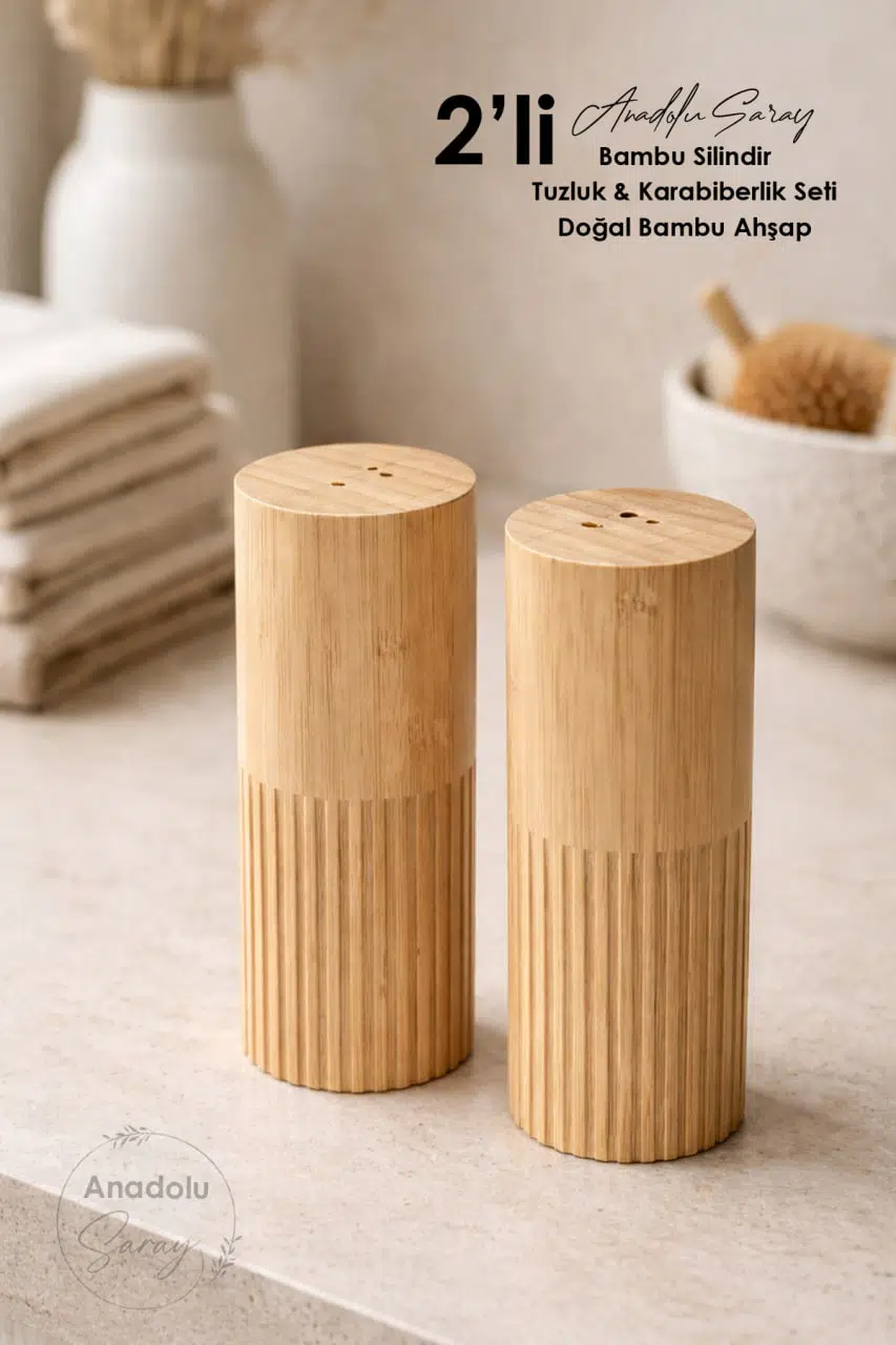 Doğal bambu malzemeden üretilmiş silindir formdaki tuzluk ve karabiberlik seti, mutfağınıza ve sofralarınıza sıcak ve şık bir dokunuş kazandırır.