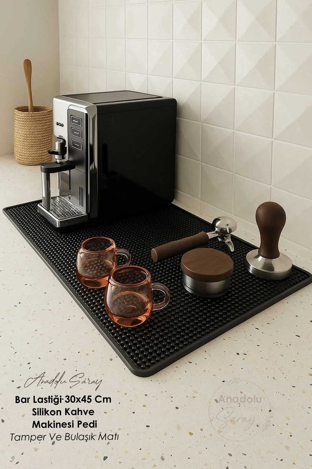 30x45 cm ölçülerindeki silikon bar lastiği, kahve istasyonunuzu düzenli ve profesyonel hale getirir.