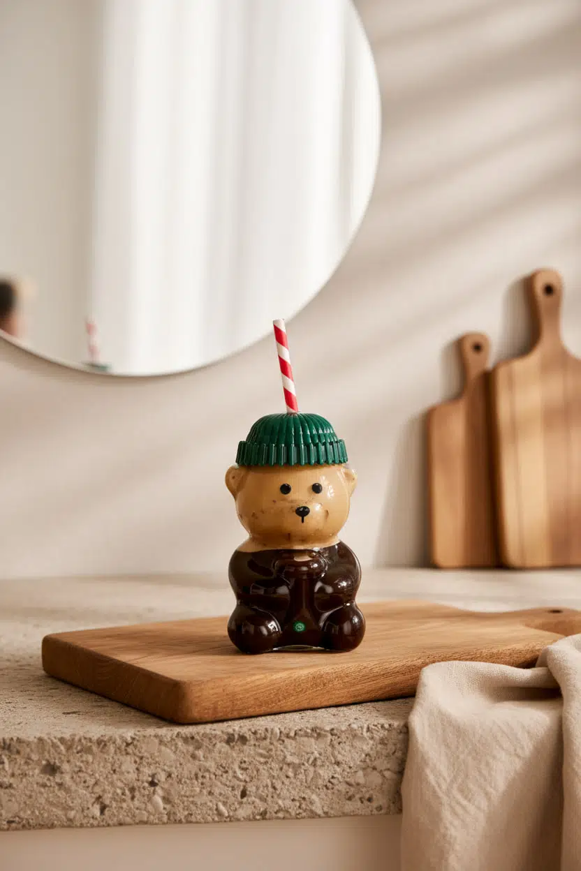 Hem işlevsel hem de dekoratif bir ürün arayanlar için ayıcık figürlü cam soğuk içecek bardağı, mutfağınıza neşe katacak şık bir seçenektir.