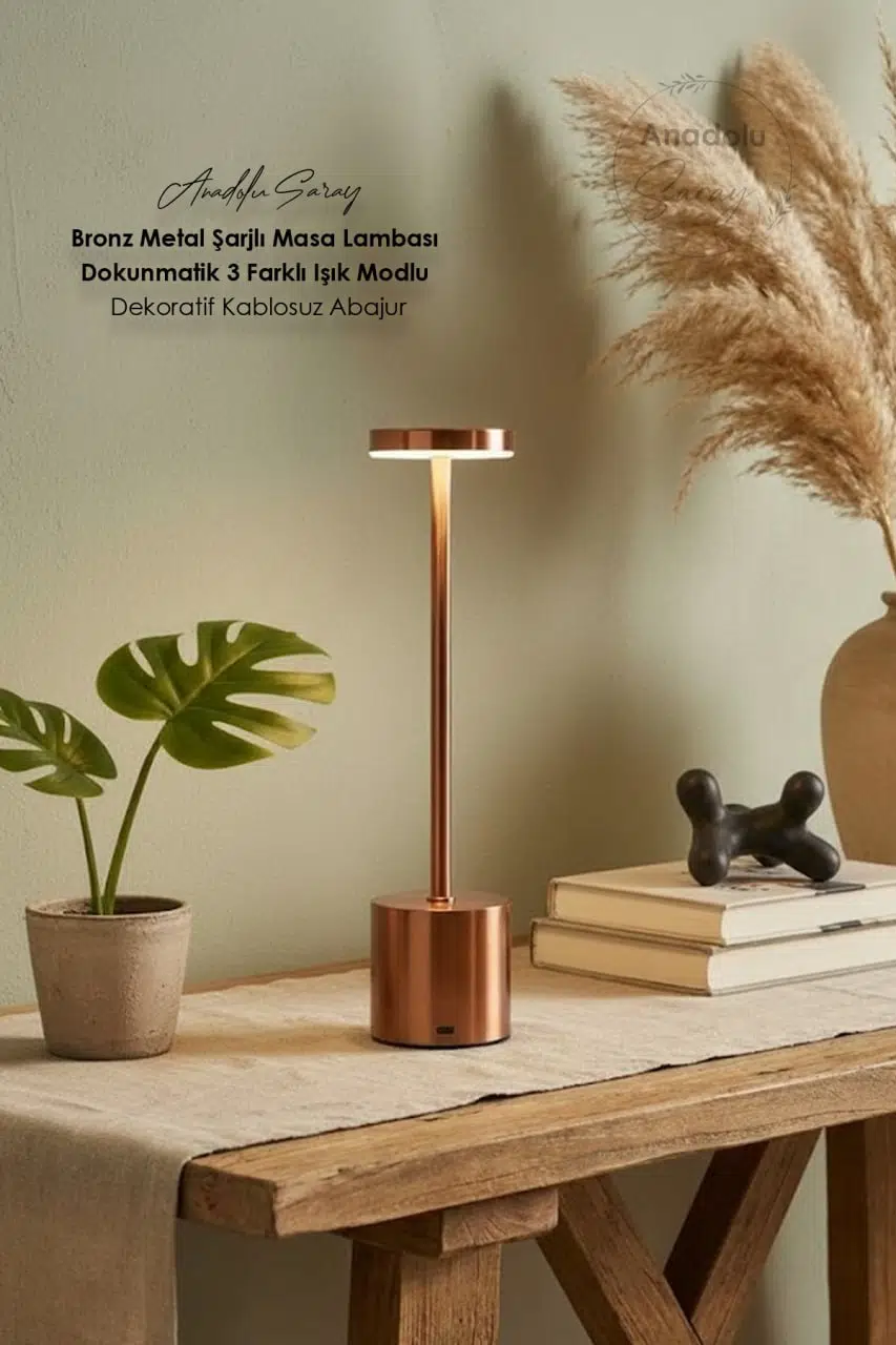 Paket İçeriği: 1 Adet Bronz Dekoratif Şarjlı Masa Lambası 1 Adet USB Şarj Kablosu