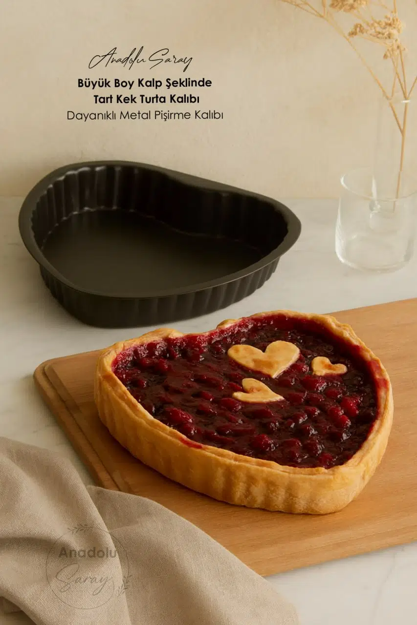 Büyük boy kalp modelindeki tart ve kek kalıbı, mutfakta estetik ve pratikliği bir araya getiren özel bir tasarıma sahiptir.
