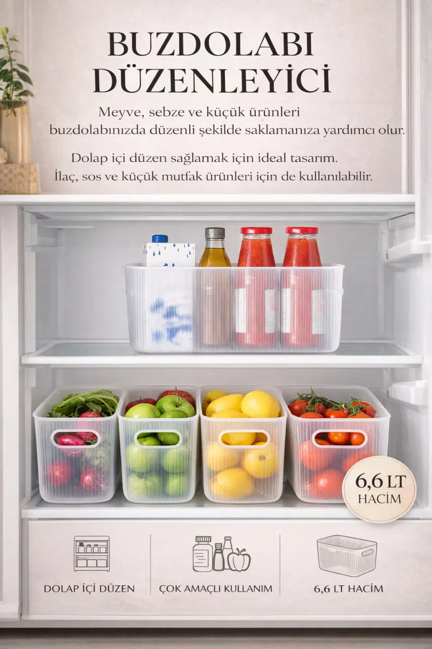 Buzdolabında dağınıklığı önler ve alan tasarrufu sağlar.