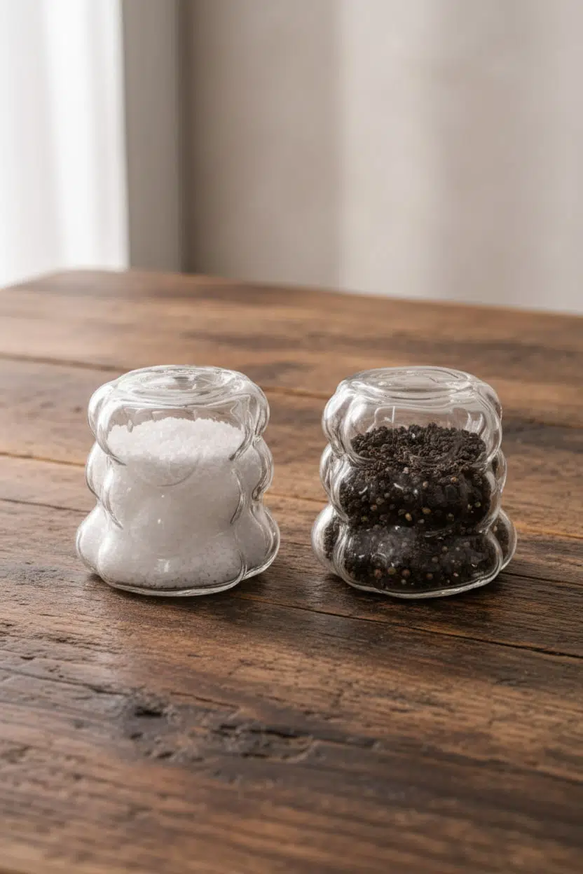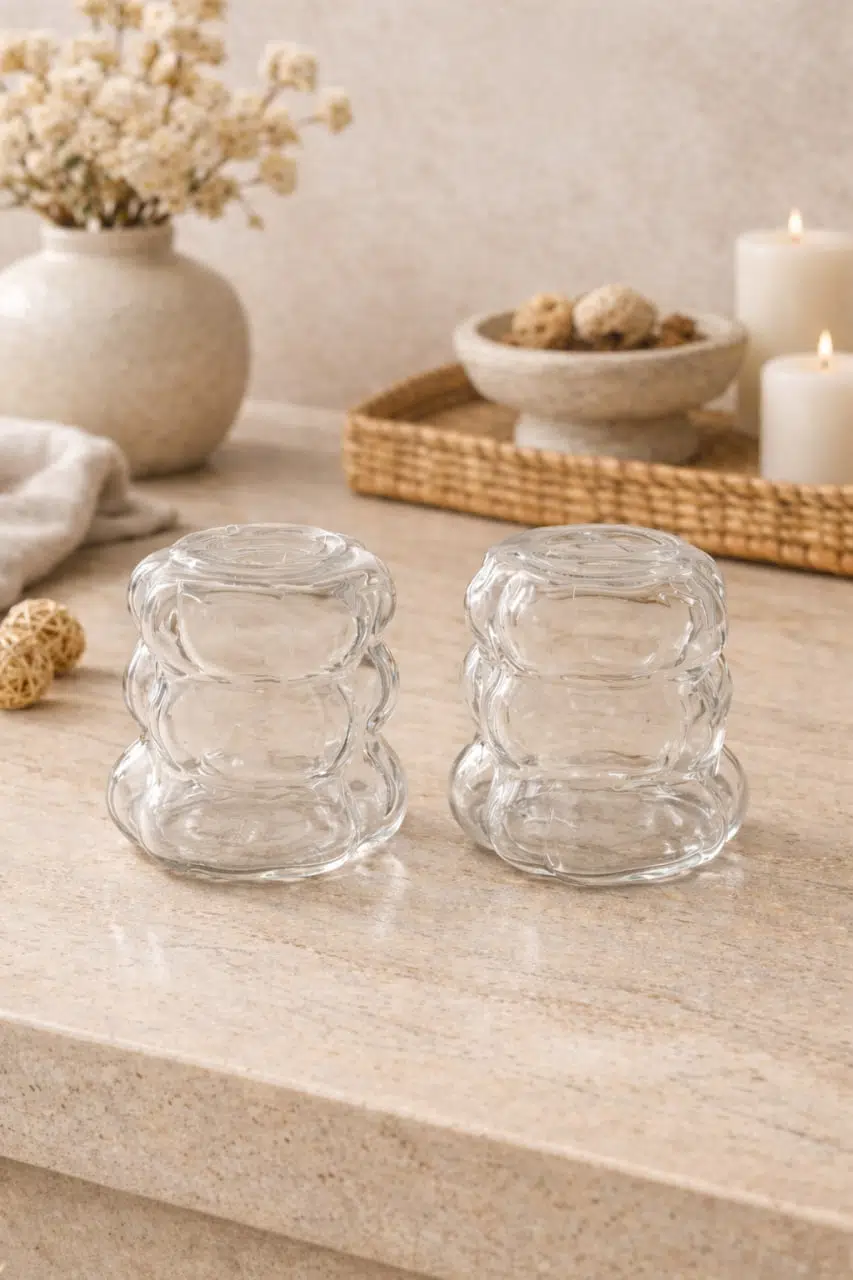 2 adet cam baharatlıktan oluşan set, hem günlük kullanım hem de misafir sofraları için şık bir alternatiftir.