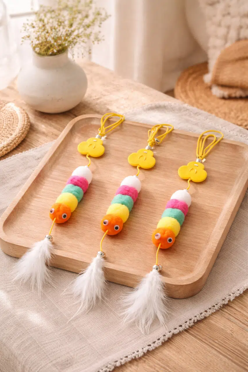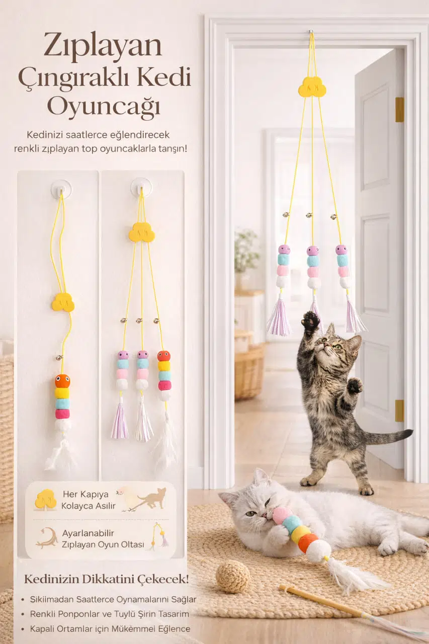 Renkli ponpon tasarımı ve ucundaki çıngırak detayı sayesinde kedinizin dikkatini anında çeker. Evde yalnız kalan kediler için ideal bir aktivite sunar.