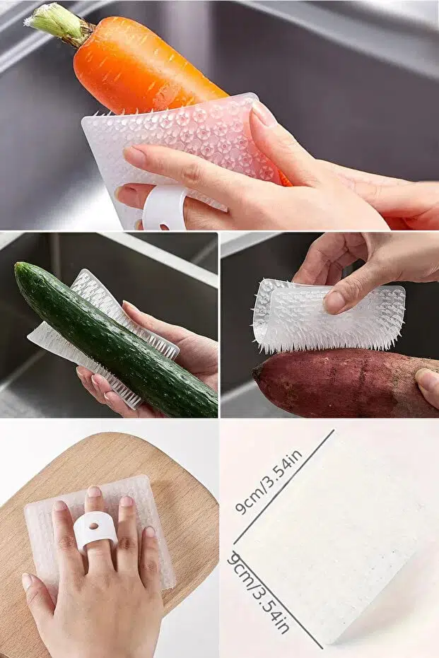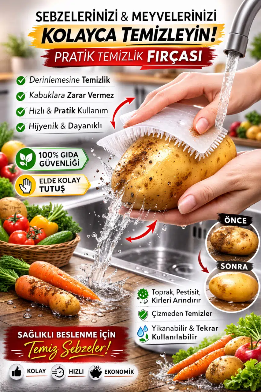 Çok fonksiyonlu sebze meyve temizleme fırçası, patates, havuç, elma, salatalık ve diğer tüm sebze ve meyvelerinizi zahmetsizce temizlemenizi sağlar.