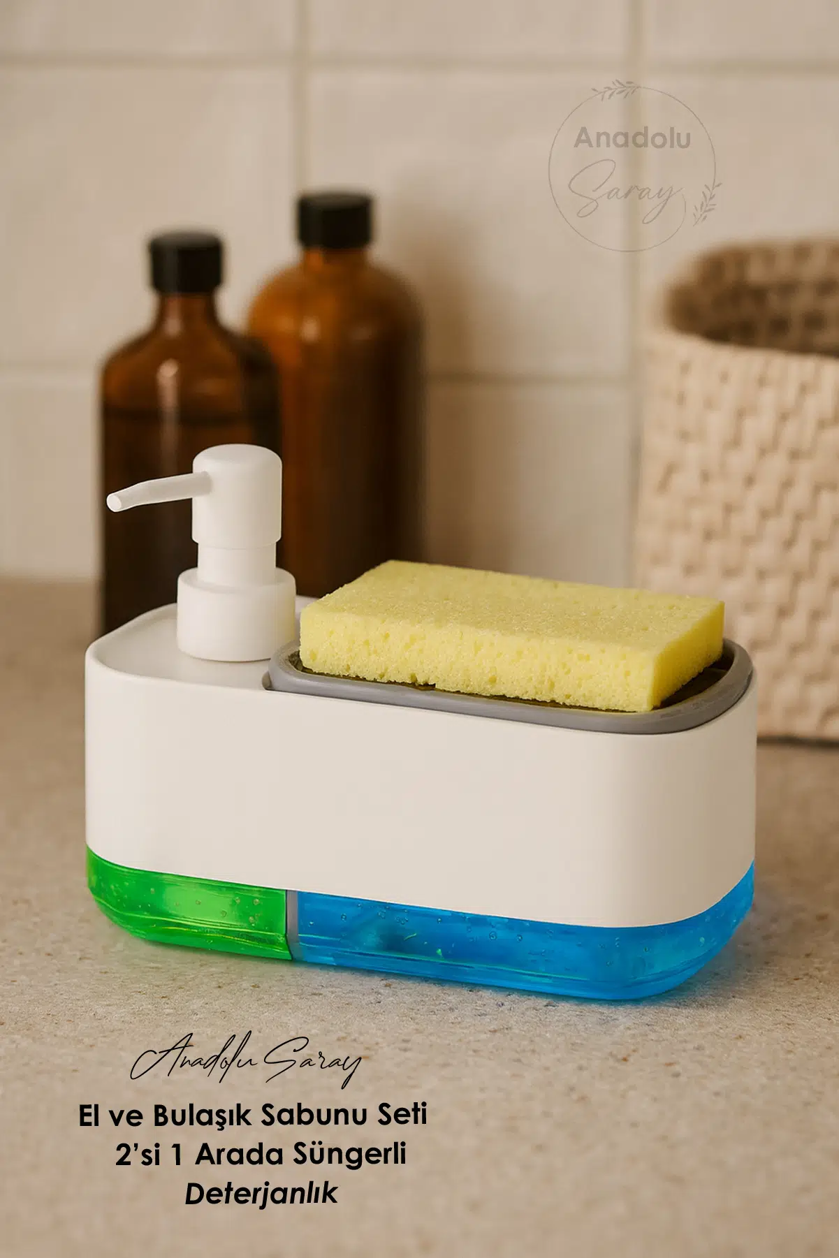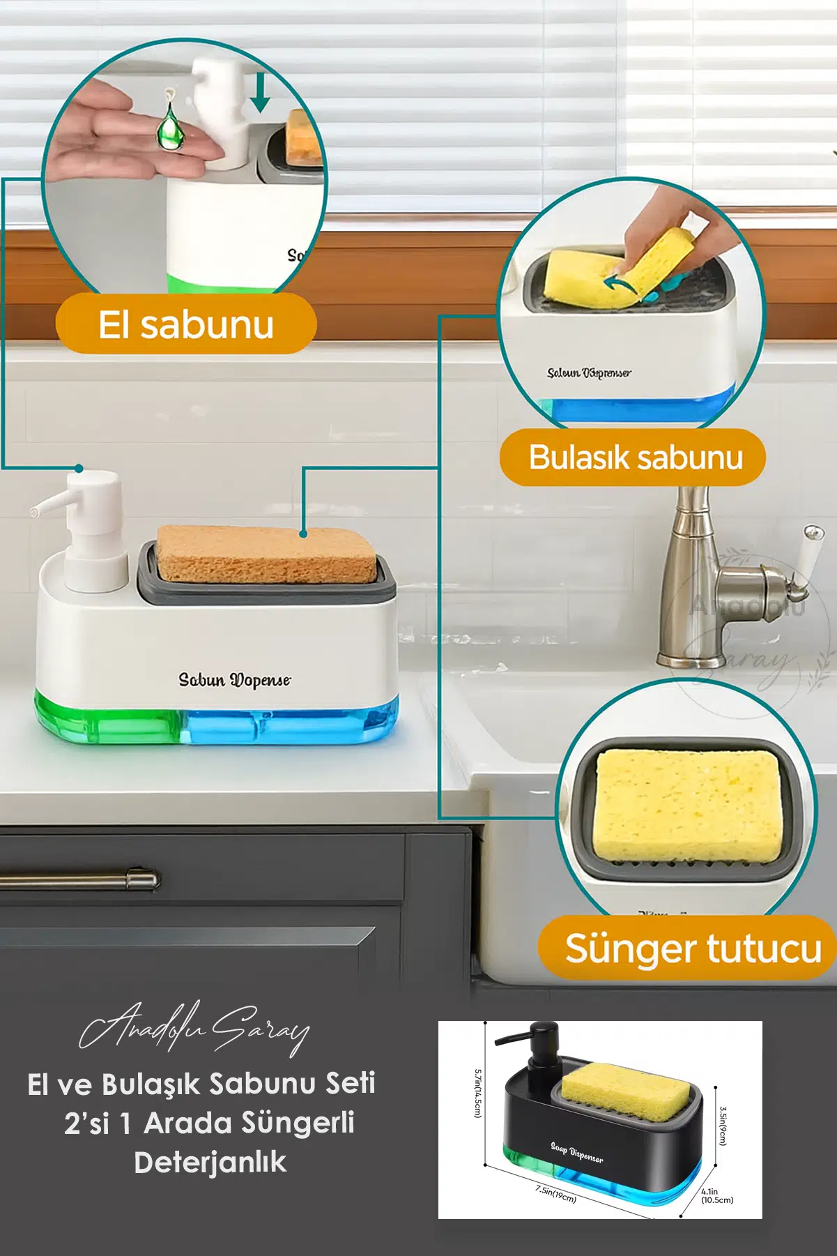 Üst kısmındaki sünger bölmesi sayesinde bulaşık süngerinizi hijyenik şekilde muhafaza ederken, alt kısmındaki geniş hazne deterjan veya sıvı sabun doldurmak için idealdir.