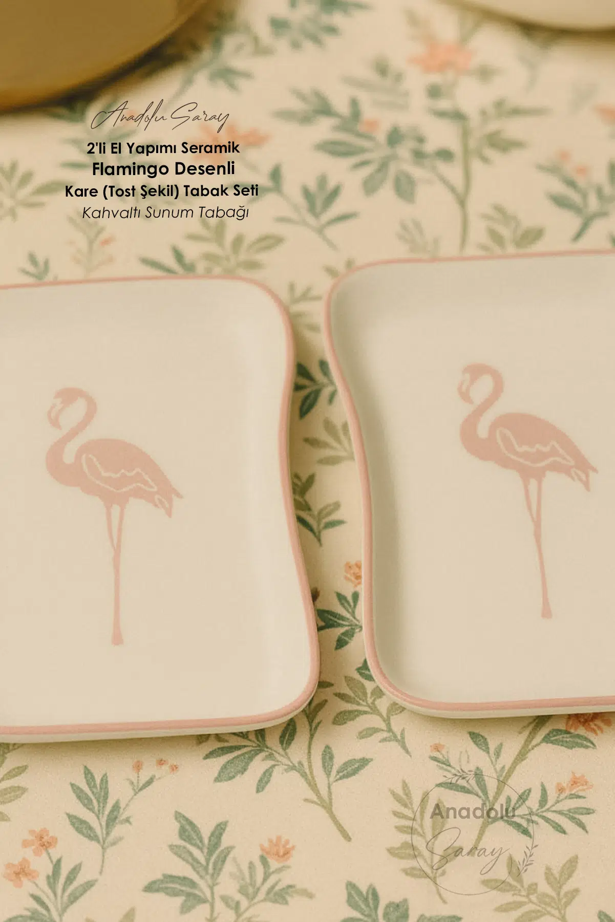 Tabakların üzerinde yer alan narin Flamingo Deseni, sofranıza canlılık ve neşe getirir.