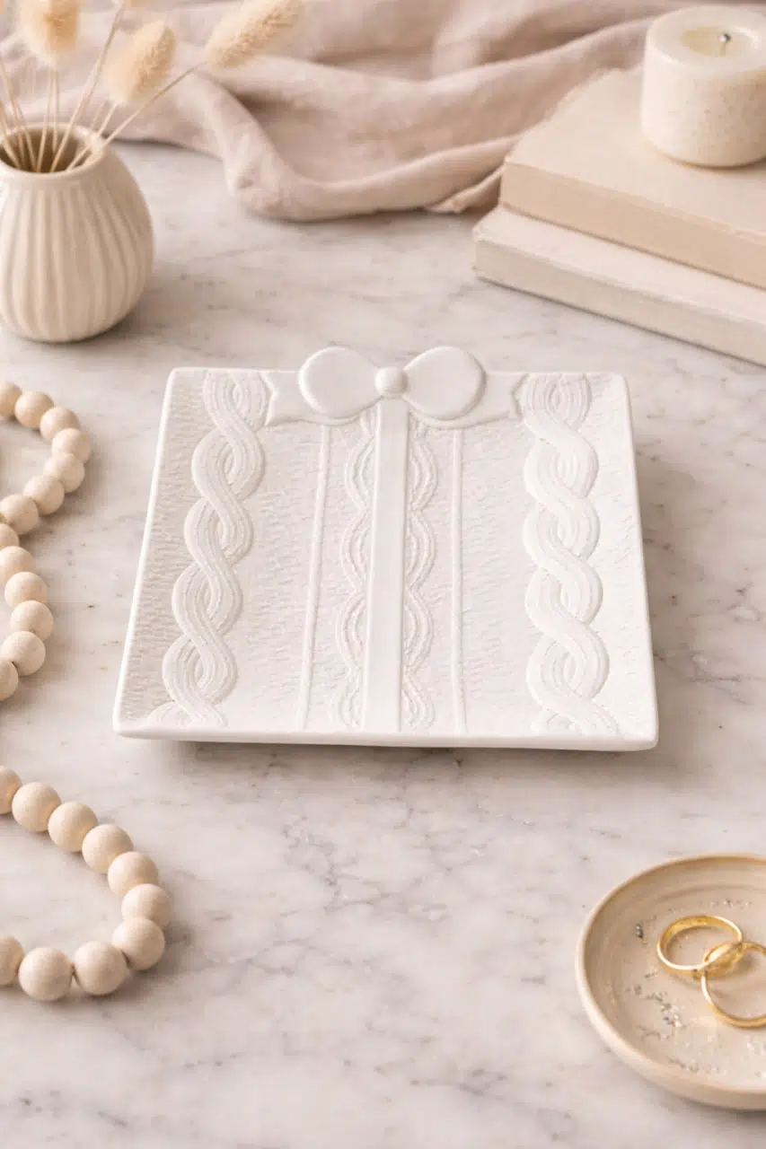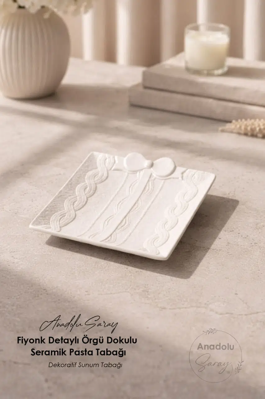 Zarif detayları ve modern tasarımıyla öne çıkan fiyonk detaylı örgü dokulu seramik pasta tabağı, sofralarınıza estetik bir dokunuş kazandırır. Örgü dokulu yüzeyi ve minimal fiyonk detayı sayesinde hem klasik hem modern masa düzenleriyle uyum sağlar.
