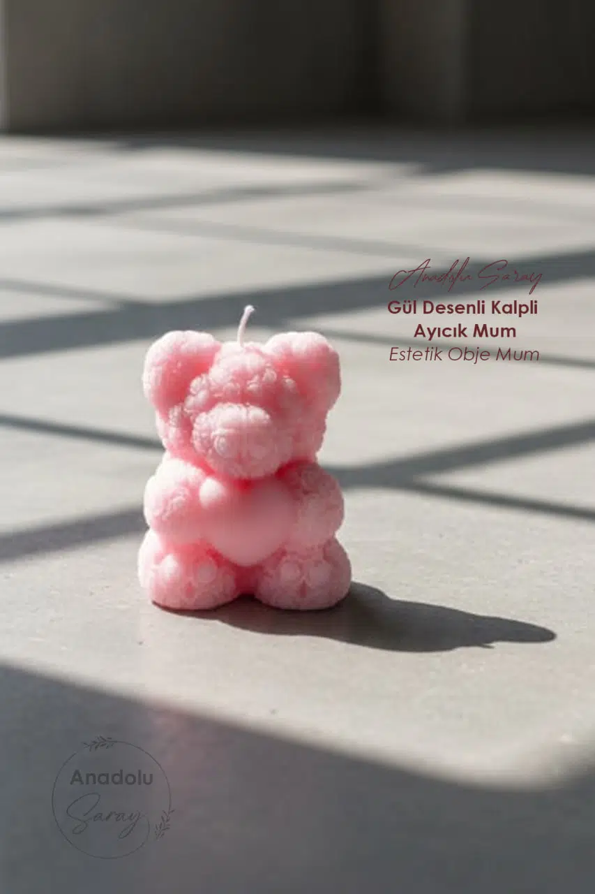 Paket İçeriği: 1 Adet Pembe Gül Dokulu Kalpli Ayıcık Mum