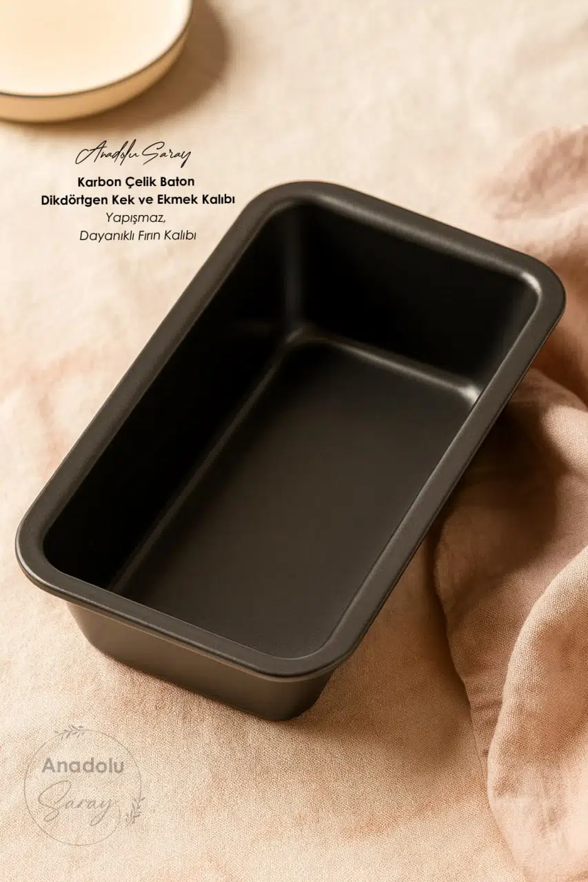 Evde profesyonel sonuçlar elde etmek isteyenler için tasarlanan karbon çelik baton dikdörtgen kek ve ekmek kalıbı, yüksek ısıya dayanıklı özel yapısıyla pişirme sürecini mükemmelleştirir.