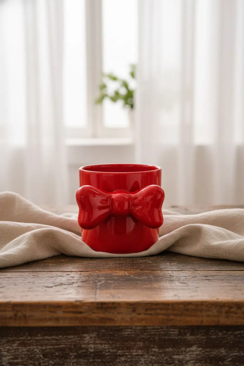 Parlak kırmızı rengi ve üç boyutlu fiyonk detayı sayesinde hem günlük kullanım hem de özel sunumlar için ideal bir tercihtir.