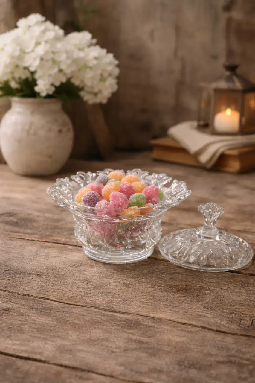 Dekoratif görünümü sayesinde sadece bir şekerlik değil aynı zamanda estetik bir masa dekoru olarak da kullanılabilir.