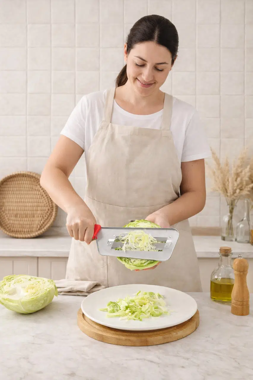 Lahana doğrayıcı, mutfakta pratik çözümler arayan herkes için vazgeçilmez bir yardımcıdır. Hızlı, güvenli ve zahmetsiz dilimleme deneyimi sunarak yemek hazırlama sürecini keyifli hale getirir.