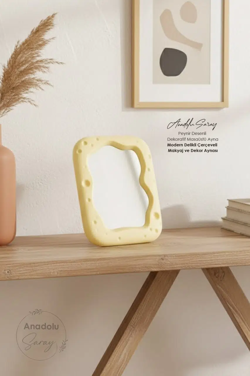 Masanıza, makyaj alanınıza veya herhangi bir yaşam alanınıza modern ve neşeli bir hava katacak olan Peynir Desenli Dekoratif Masaüstü Ayna ile tanışın.