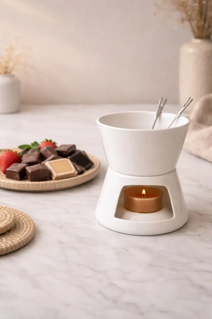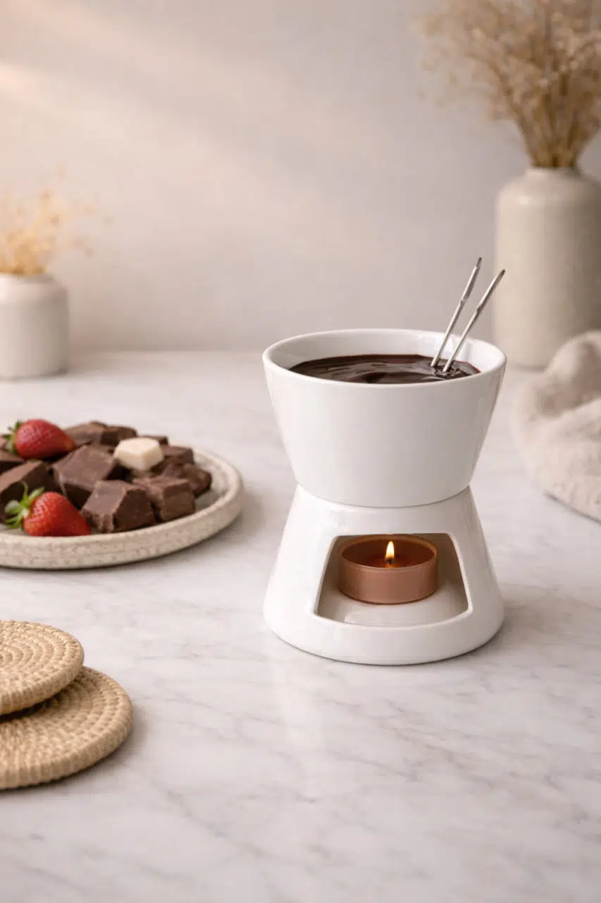 Minimal ve modern tasarımı sayesinde hem günlük kullanım hem de özel davetler, romantik akşamlar, kahve yanı sunumları ve misafir ağırlama için mükemmel bir tercihtir. Çikolata fondüsü ile meyve, kek ve bisküvi sunumları yapabilir; peynir fondüsü ile sofralarınıza farklı bir lezzet katabilirsiniz.