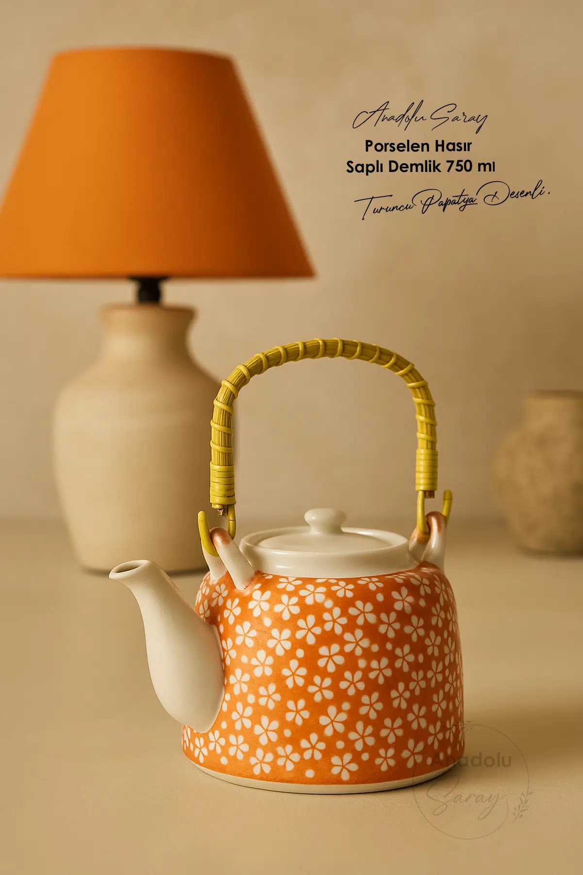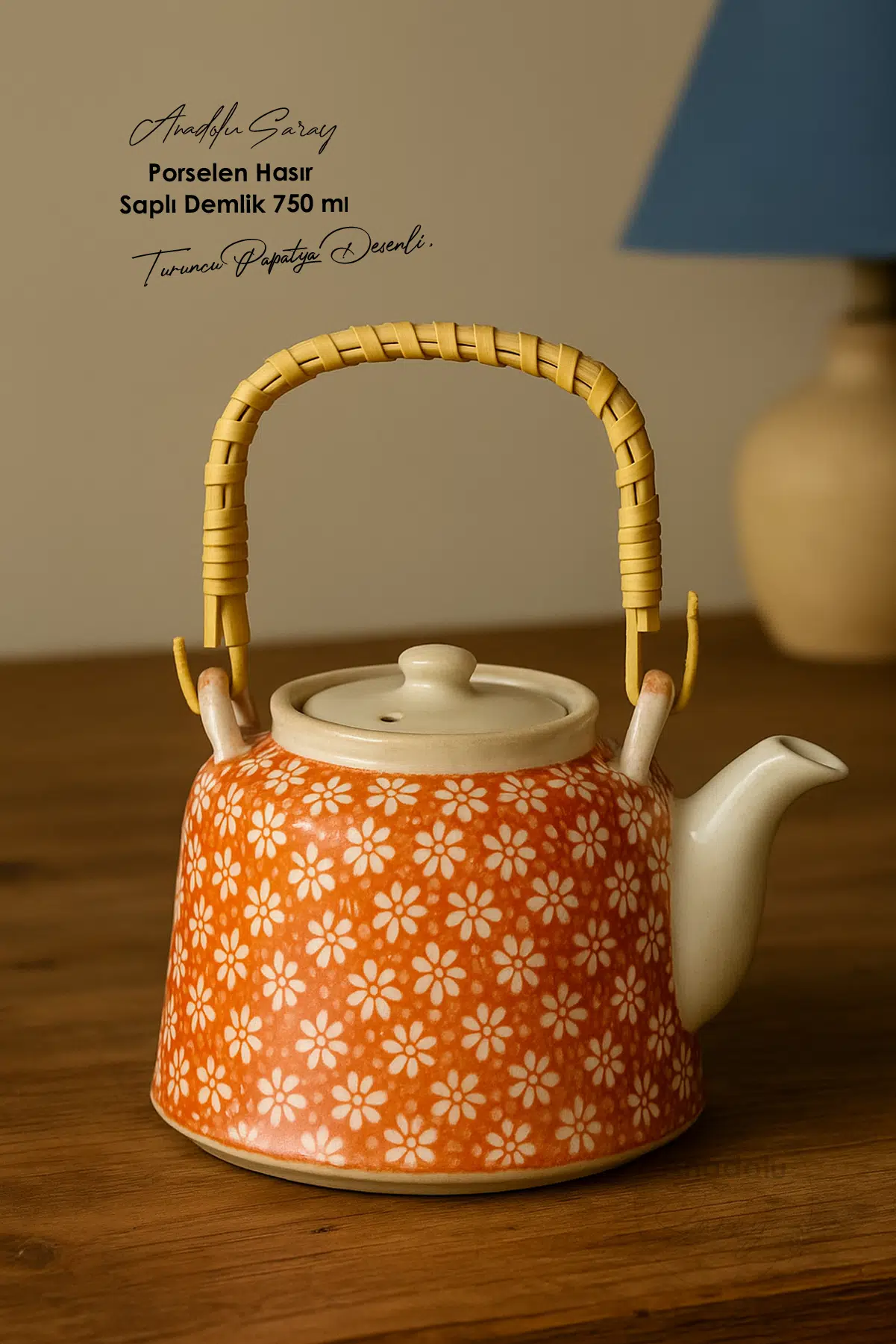 Etnik Papatya tarzı ve zarif çini desenleriyle sofralarınıza sıcaklık katacak Porselen Hasır Saplı Demlik, “bitki çayım olmadan asla yapamam” diyenler için tasarlandı.