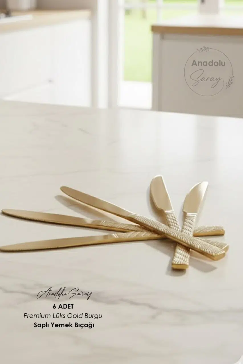 Zengin Altın Kaplama: Bıçakların yüzeyindeki parlak altın kaplama, ürüne "premium" bir hava katar. Bu lüks kaplama, en özel davet sofralarınızda bile göz alıcı bir şıklık sunar.