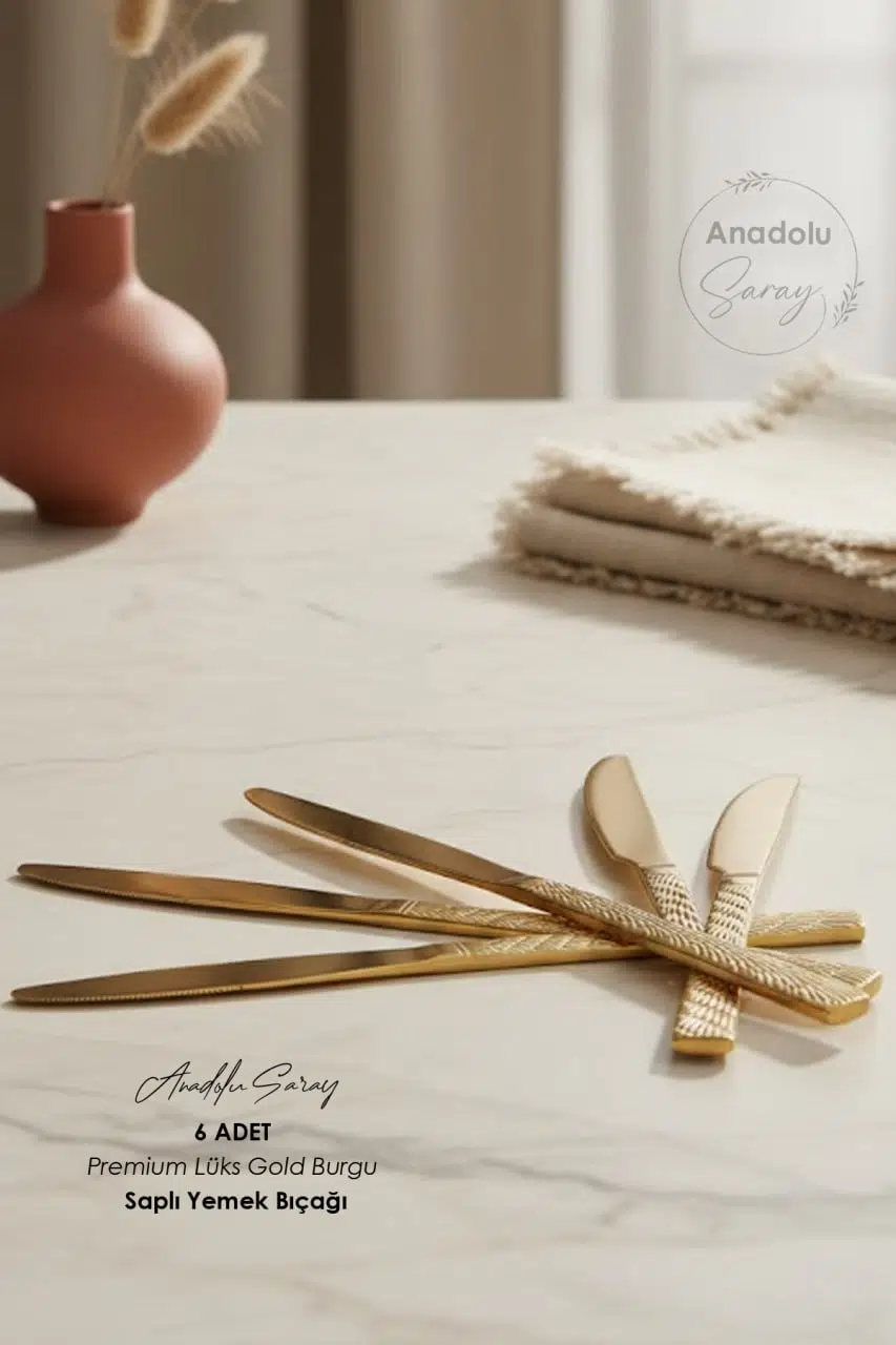 Sofra Şıklığınızı Tamamlayın: Premium Altın Burgu Saplı Yemek Bıçak Seti