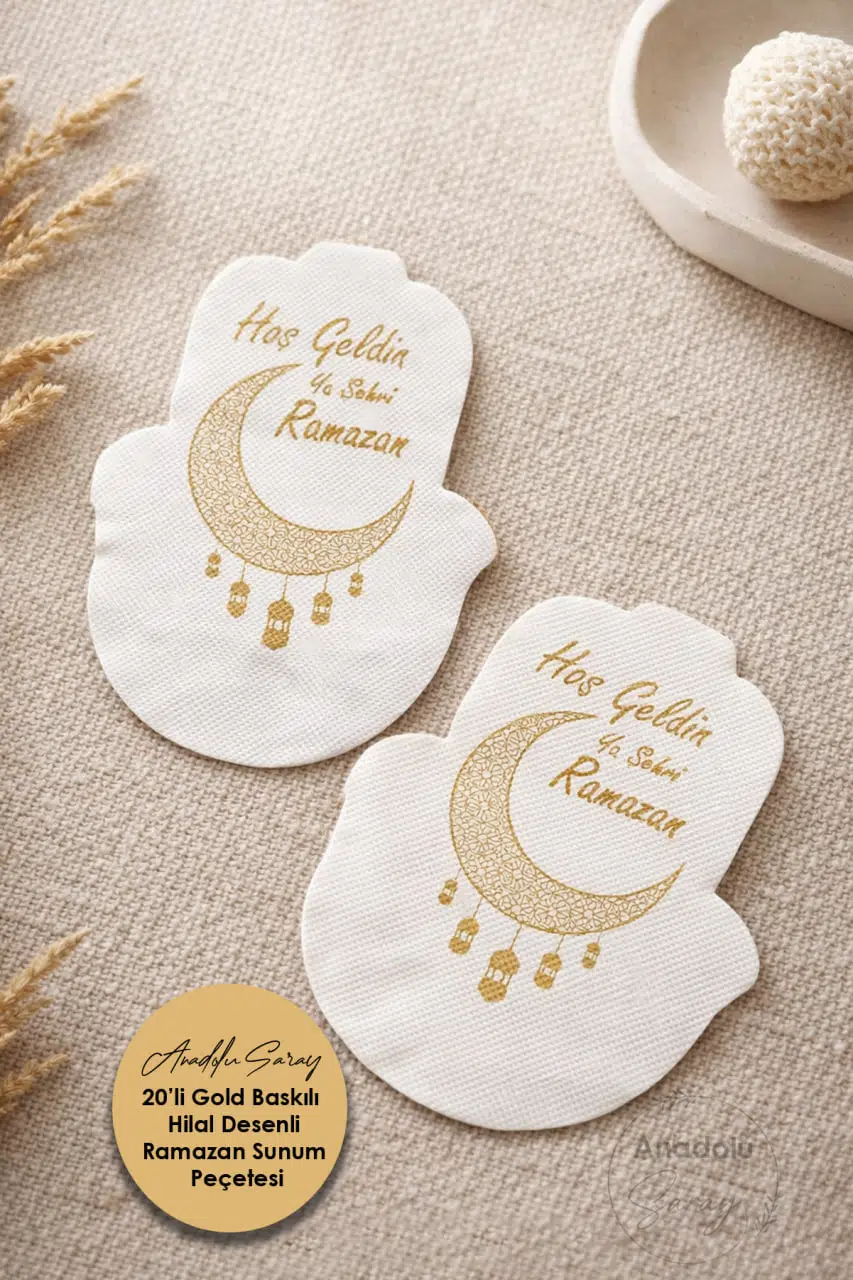 Ramazan masa süsü, iftar peçetesi, Ramazan sofra dekorasyonu, gold baskılı peçete ve özel gün sunum aksesuarı arayanlar için ideal bir tercihtir.