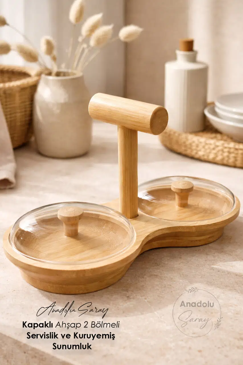 Doğal ve şık tasarımıyla öne çıkan kapaklı ahşap çift bölmeli servislik, mutfağınızda ve sunum alanlarınızda hem estetik hem de fonksiyonel bir kullanım sunar. Özenle işlenmiş ahşap gövdesi ve modern formu sayesinde günlük kullanımdan özel davetlere kadar her ortama uyum sağlar.