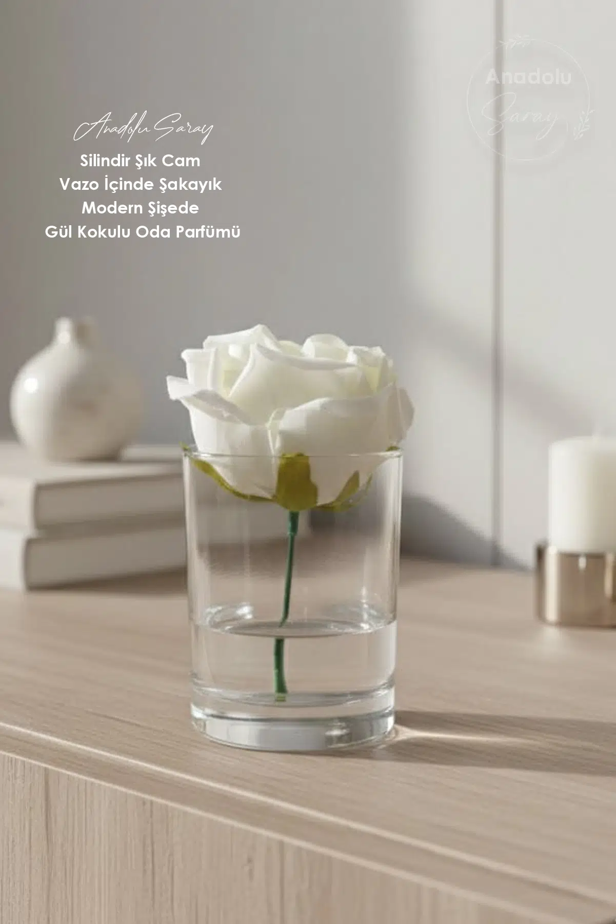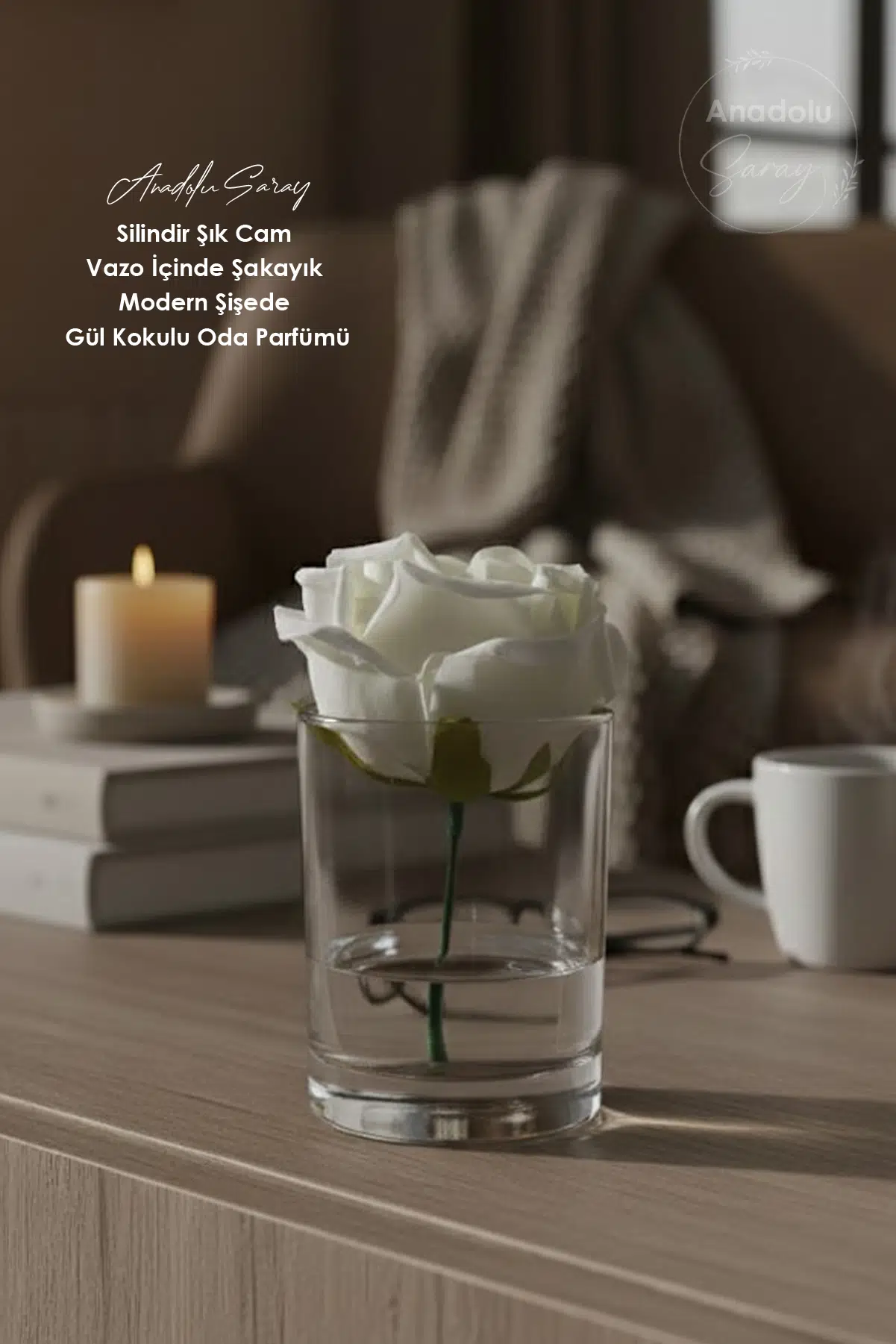 Setin tamamlayıcı parçası olan modern tasarımlı şişedeki gül kokulu oda parfümü, evinizin atmosferini anında değiştirir.